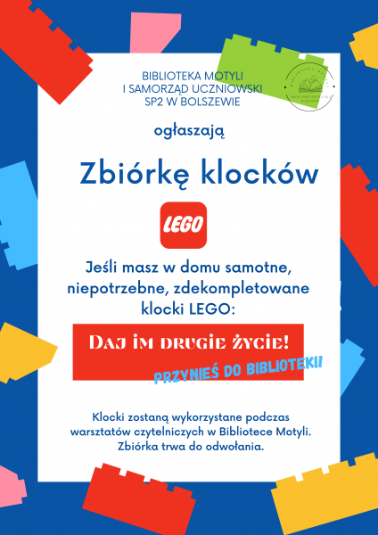 W czytelni czekało na nich przyciemnione światło, kolorowe refleksy projektora koiły oczy, śpiew ptaków uspokajał uszy, a olejki eteryczne o zapachu lasu łagodnie relaksowały. Takie były właśnie sensoryczne przerwy, które mamy nadzieję, wrócą we wrześniu, bo cieszyły się dużym powodzeniem. W ramach projektu Mistrzyni Szymborska, we współpracy z Panią Justyną Gąsiewicz, odbył się konkurs recytatorski klas 4-8. Na zakończenie Tygodnia Bibliotek, uczniowie brali udział w akcji czytelniczej Sleeveface czyli ubierz się w książkę. Efekty są zachwycające, co można zobaczyć w galerii zdjęć. Biblioteka ogłosiła również zbiórkę klocków LEGO, która cały czas trwa. Za dostarczone już klocki bardzo dziękujemy!