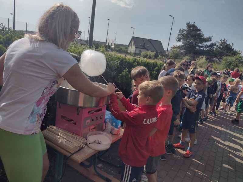 W organizację Święta Dzieci bardzo aktywnie zaangażowała się także Rada Rodziców, która przygotowała wiele atrakcyjnych konkurencji i zabaw. Jednak najbardziej oblegane było stoisko z watą cukrową. Dużo emocji dostarczył wszystkim mecz nauczycieli z uczniami.Tradycyjnie wygrali nauczyciele, uczniowie jeszcze muszą poćwiczyć. Widząc zaangażowanie dzieci, jesteśmy przekonani, że wszyscy dobrze się bawili. Bardzo serdecznie dziękujemy Radzie Rodziców i rodzicom, którzy przygotowali ciasta, oraz nauczycielom i pracownikom szkoły, którzy się przyczynili do organizacji tej uroczystości.