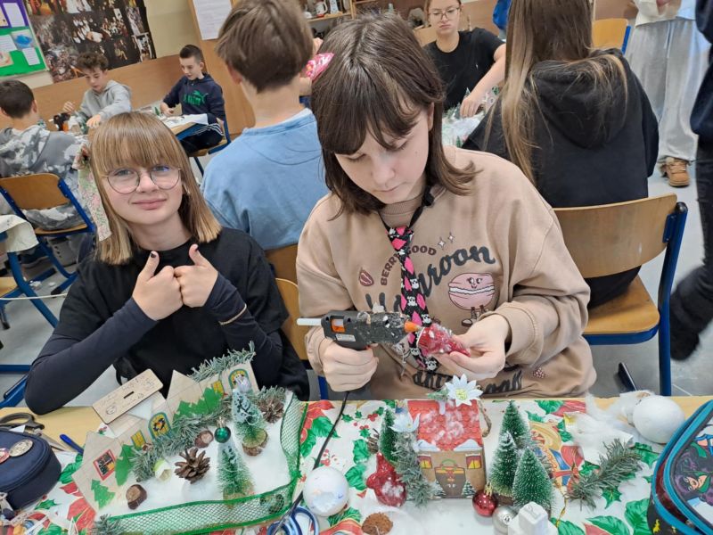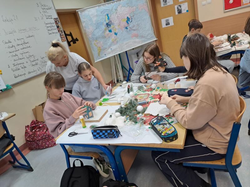 27.11.2025 klasę 7f odwiedziła pani Alicja Czepik, by przeprowadzić warsztaty świąteczne. Młodzież wykonała stroiki, które będzie można zakupić na Kiermaszu 13.12.2025 w naszej szkole. Pani Ala, tak napisała: Było mi niezmiernie miło że wszyscy byli i skupieni przy pracy i jednocześnie tak kreatywni.... włączyłam elementy makiety, aranżacji przestrzeni i kompozycji ..a wszystko się na pewno przyda. Miłego dnia życzę wszystkim.