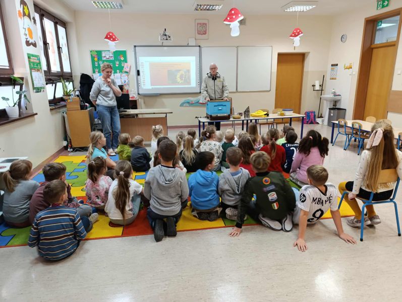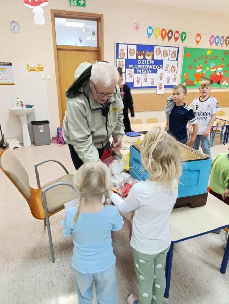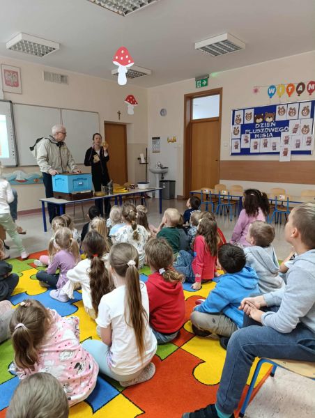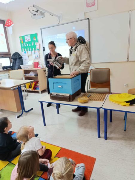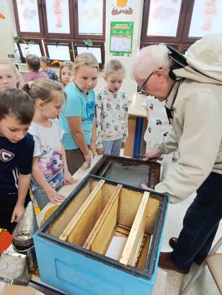 W minionym tygodniu klasę 2a i 0d odwiedził niesamowity gość! Był nim Pan Zygmunt, który jest pszczelarzem. Wizyta ta była bardzo ciekawa i pouczającą. Dowiedzieliśmy się, jak powstaje miód, gdzie żyją pszczoły, jakie mogą być rodzaje miodu i wiele innych ciekawostek. Dzieci mogły zobaczyć sprzęt, którym na codzień posługuje się Pan Zygmunt, a nawet zakładali Jego strój ochronny. Panie Zygmuncie!...bardzo dziękujemy, to dla nas ważne, że możemy poznawać tak ciekawe zawody!