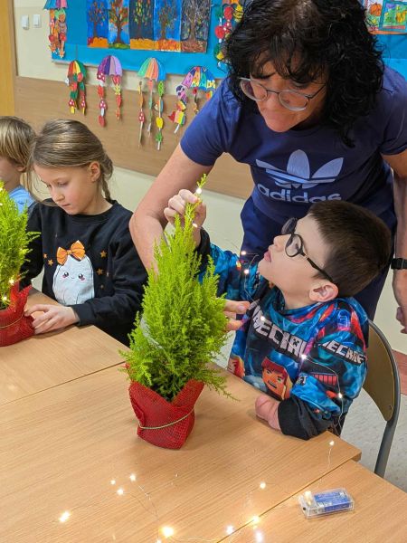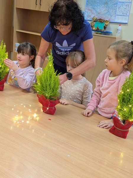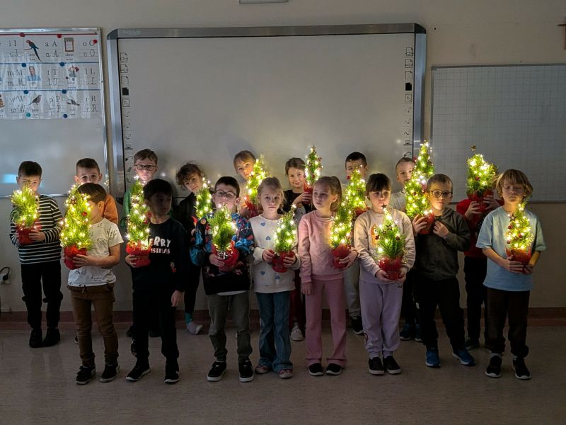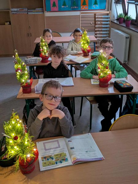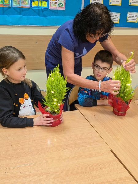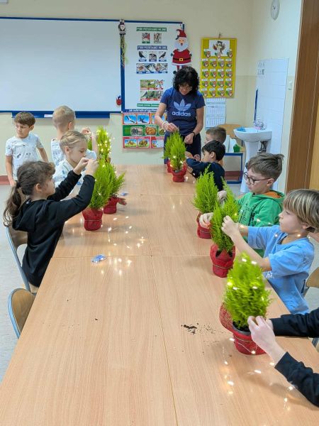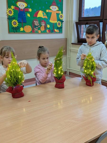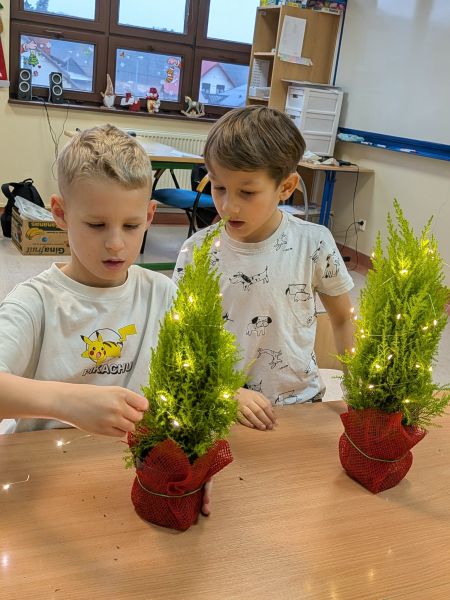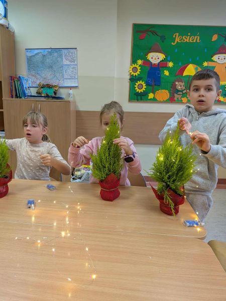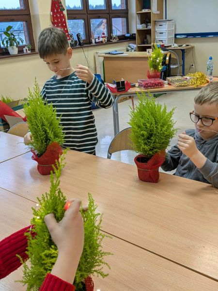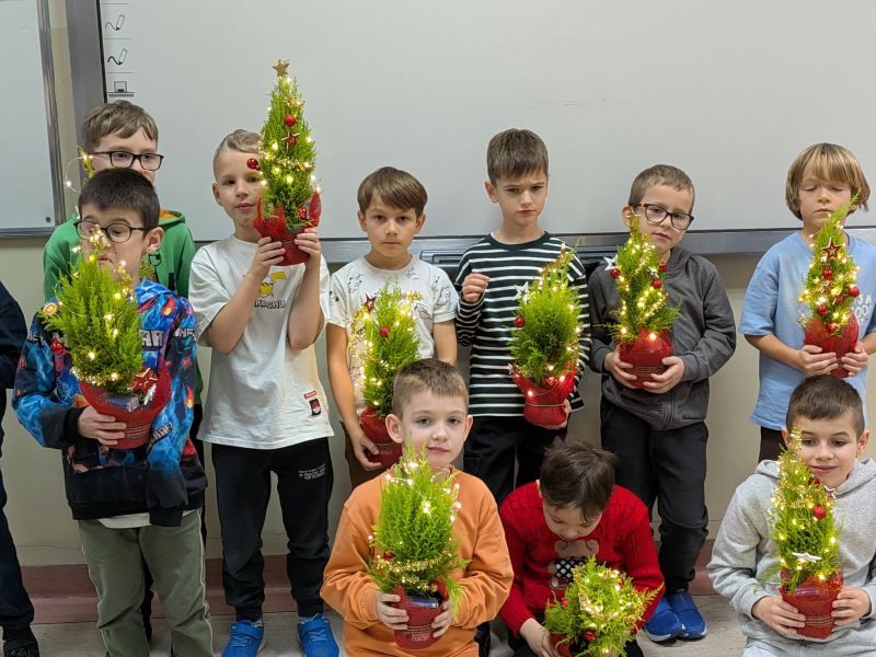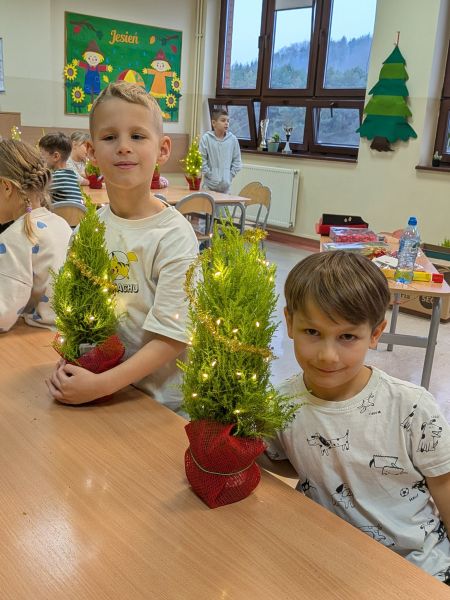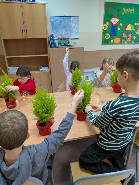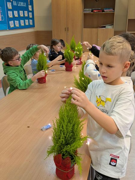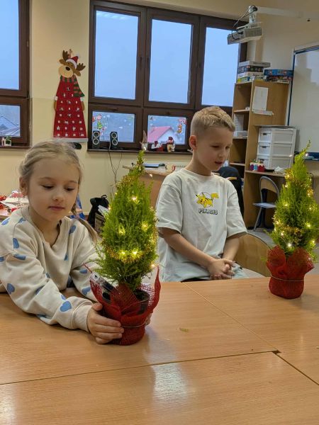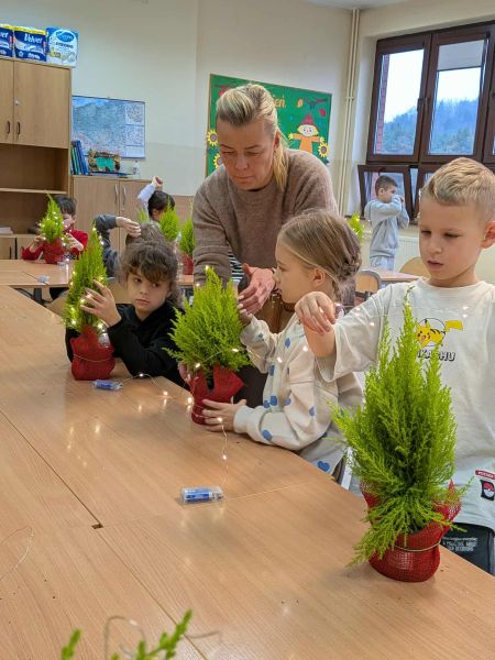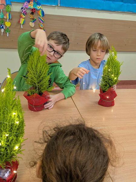 03.12.2025r. w klasie 1b odbyły się warsztaty mikołajkowe. Dzieci z dużym zaangażowaniem i radością wykonywały własnoręcznie świąteczne drzewka. Uczniowie ozdabiali swoje prace lampkami, bombkami i różnorodnymi ozdobami, świetnie się przy tym bawiąc. Spotkanie wprowadziło wszystkich w magiczną atmosferę zbliżających się świąt.