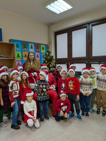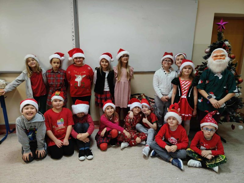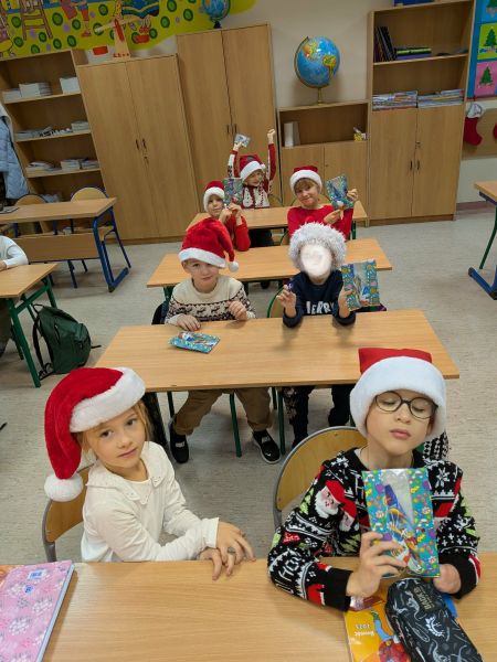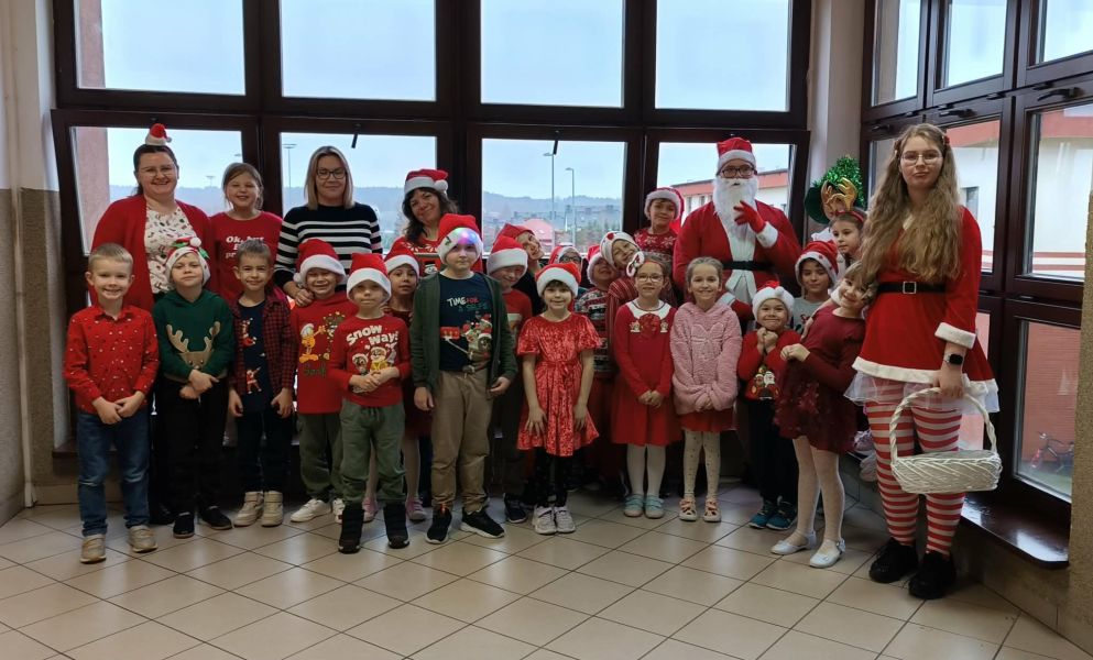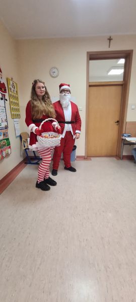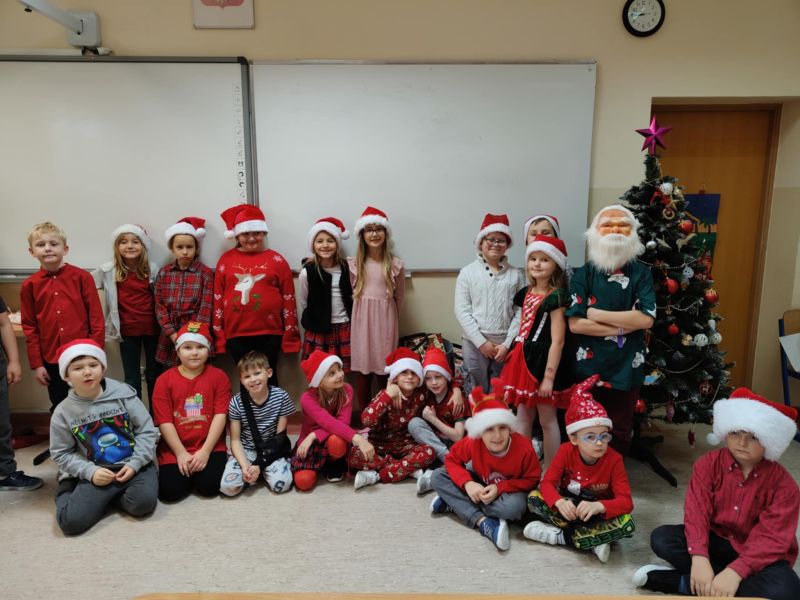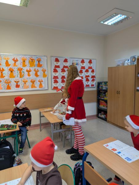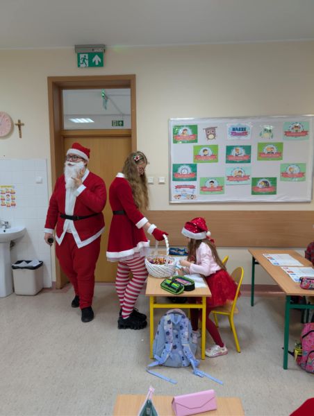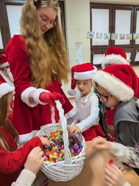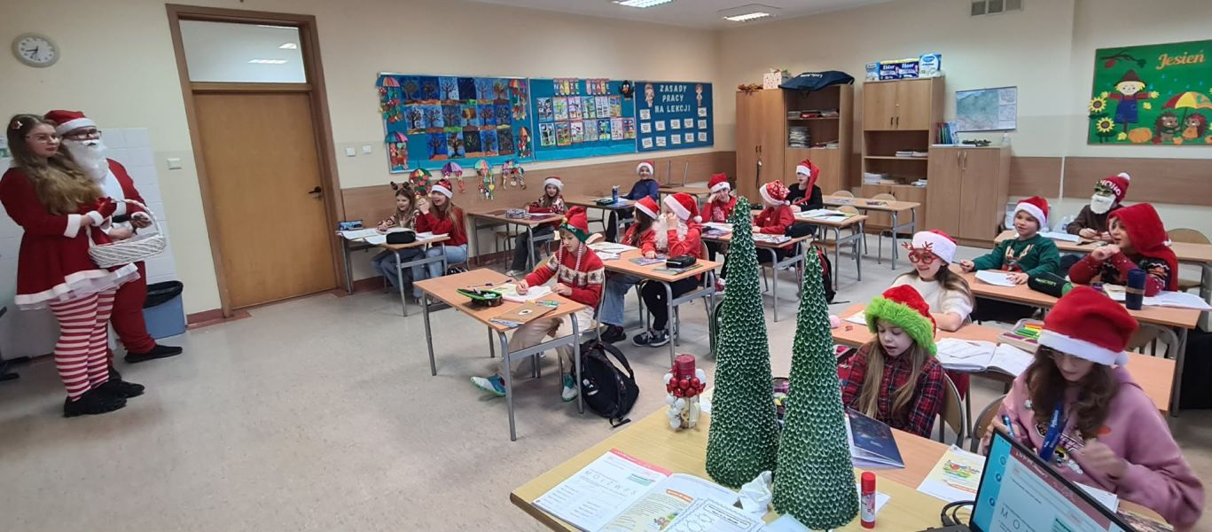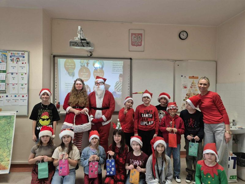 Dzisiejszy dzień w naszej szkole był wyjątkowy! Już od rana na korytarzach królował kolor czerwony, a radosna atmosfera sprawiła, że wszyscy poczuliśmy, że święta są tuż-tuż. Każdą klasę odwiedził Mikołaj wraz z Panią Mikołajową, którzy obdarowali każdego grzecznego ucznia słodkim cukierkiem. Było wiele uśmiechów, radości i ekscytacji na widok wyjątkowych gości. Nie zabrakło też wspólnego kolędowania, które wprowadziło nas w prawdziwie świąteczny nastrój.