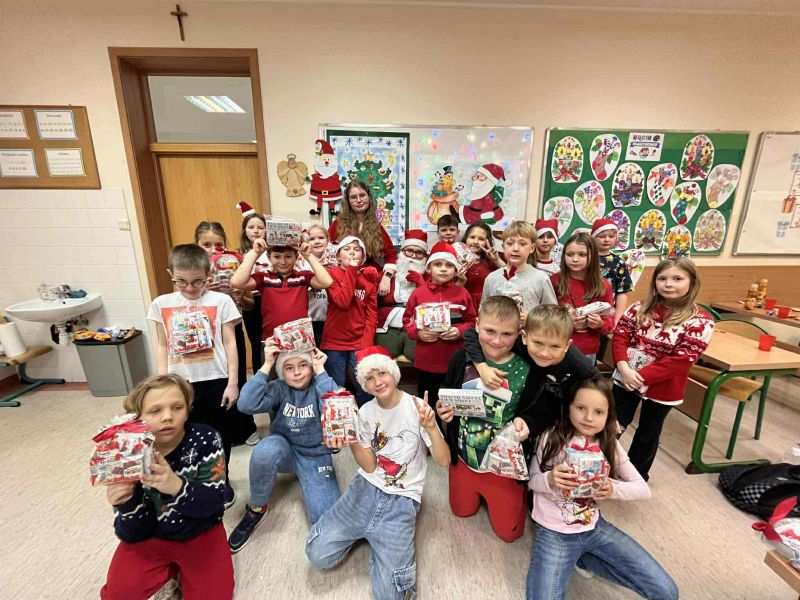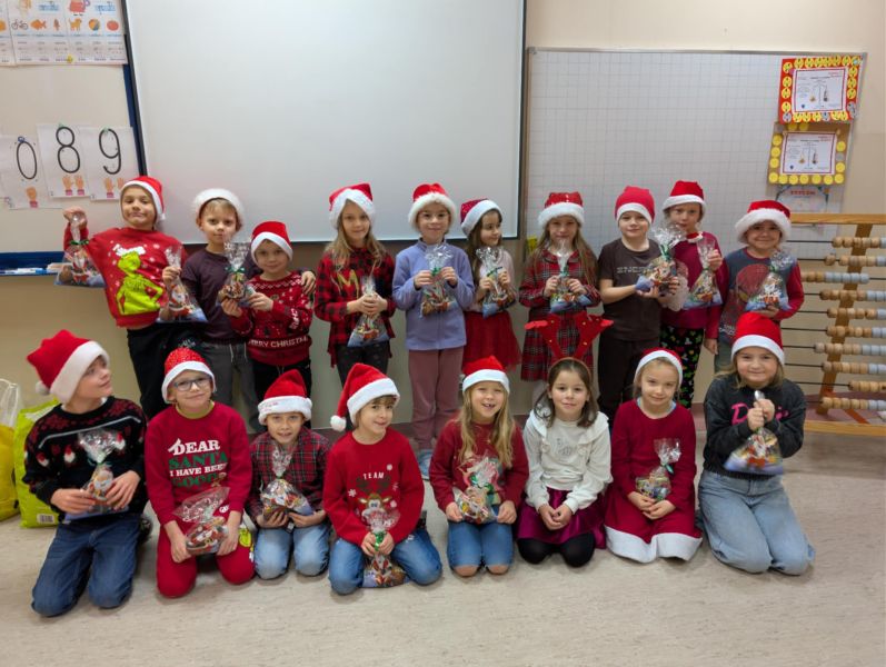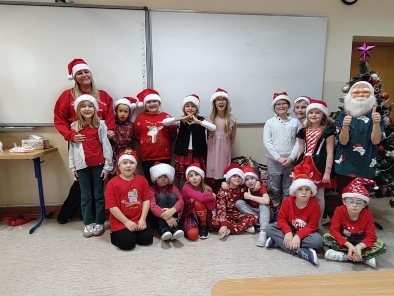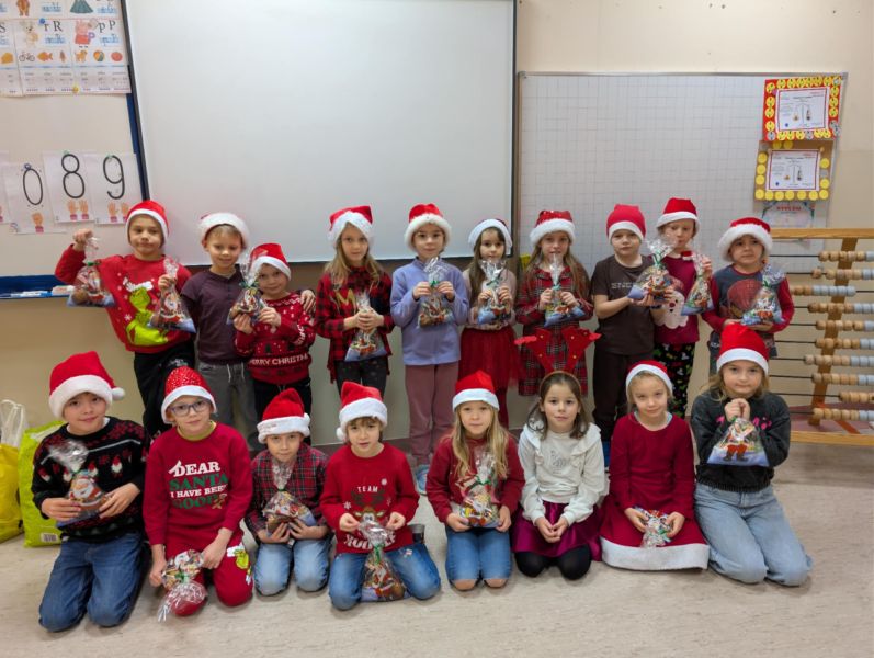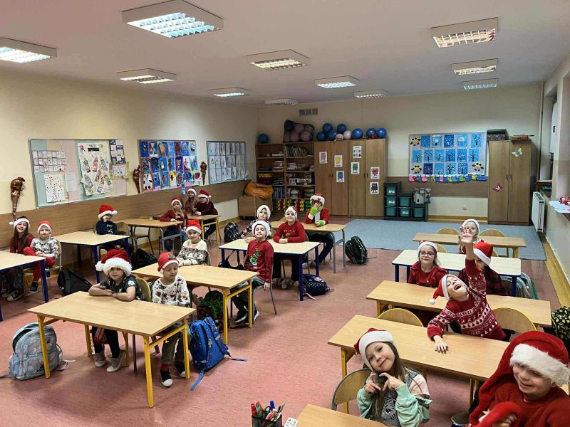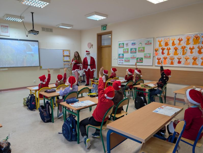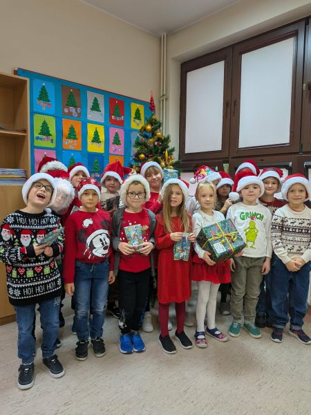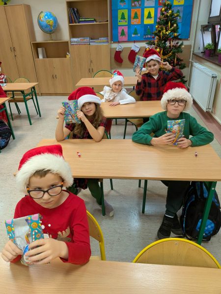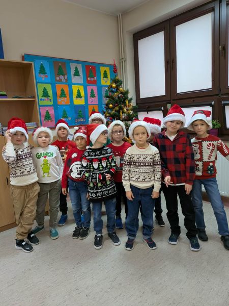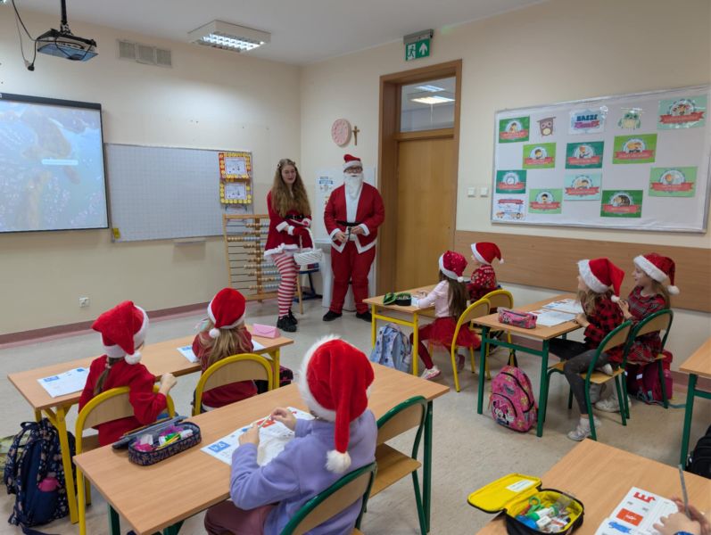 Dzisiejszy dzień w naszej szkole był wyjątkowy! Już od rana na korytarzach królował kolor czerwony, a radosna atmosfera sprawiła, że wszyscy poczuliśmy, że święta są tuż-tuż. Każdą klasę odwiedził Mikołaj wraz z Panią Mikołajową, którzy obdarowali każdego grzecznego ucznia słodkim cukierkiem. Było wiele uśmiechów, radości i ekscytacji na widok wyjątkowych gości. Nie zabrakło też wspólnego kolędowania, które wprowadziło nas w prawdziwie świąteczny nastrój.