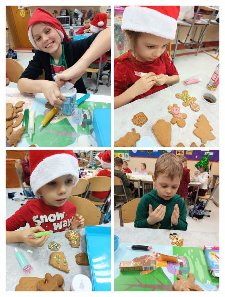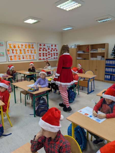 Uczniowie mogli także wykazać się kreatywnością – dekorowali i zajadali pyszne pierniczki, uczestniczyli w warsztatach plastycznych, a część klas wybrała się na wyjścia, gdzie czekało mnóstwo ruchu, śmiechu i dobrej zabawy.