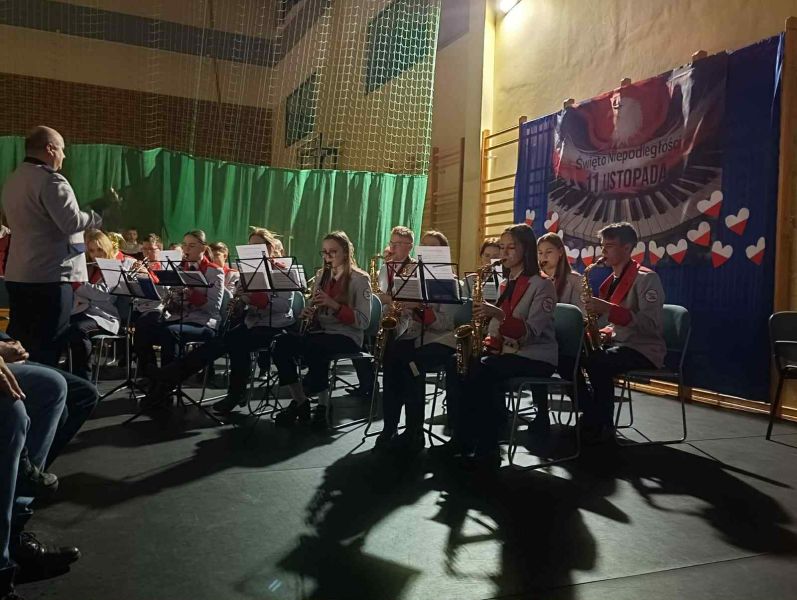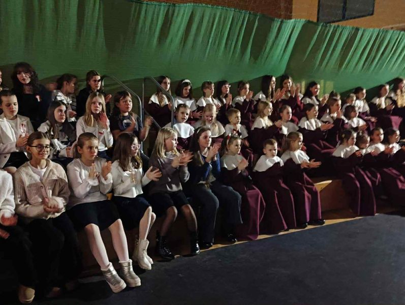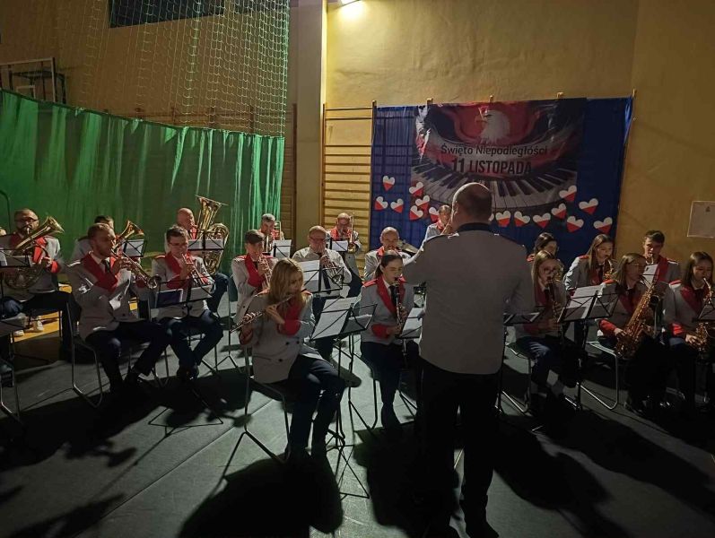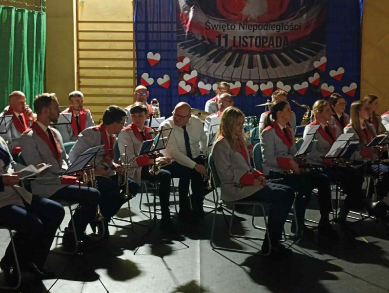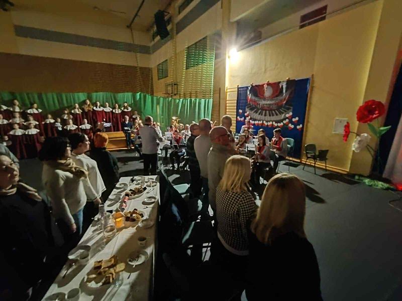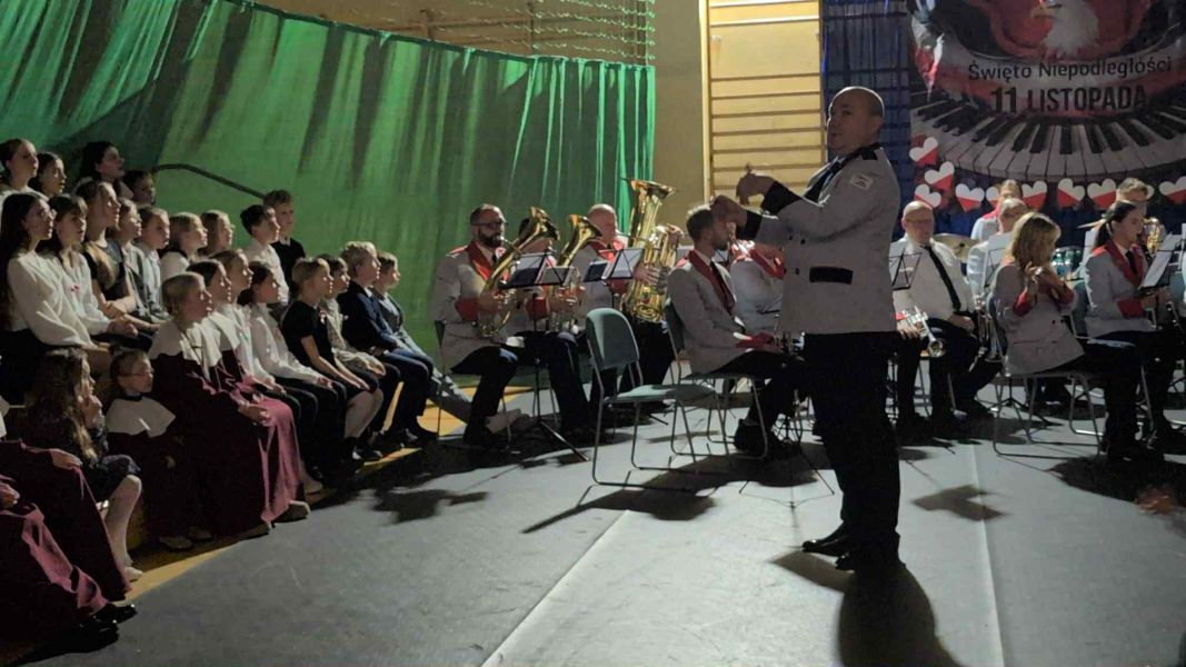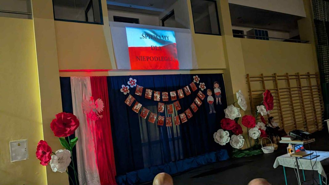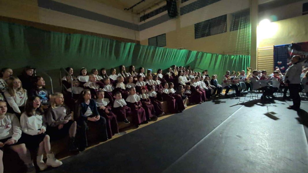 26.11.2025r. odbył się w naszej szkole, na hali widowiskowo - sportowej koncert dla mieszkańców Gminy Wejherowo „Śpiewamy dla Niepodległej” Każdy w czasie koncertu, mógł poczuć się artystą – wokalistą. Przy akompaniamencie Orkiestry Dętej Gminy Wejherowo i śpiewie scholi „Dzieci Kalasancjusza” z bolszewskiej parafii oraz uczniów naszej szkoły mieliśmy możliwość zaśpiewać pieśni i piosenki patriotyczne oraz żołnierskie.