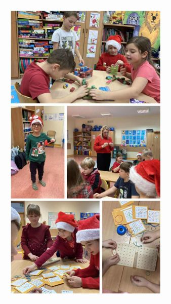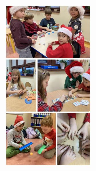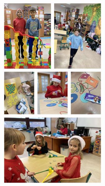 W okresie przedświątecznym w świetlicy szkolnej odbyły się warsztaty mikołajkowe, w których uczestniczyli podopieczni świetlicy. Zajęcia zostały zorganizowane z wykorzystaniem nowych zabawek edukacyjnych, zakupionych dzięki środkom finansowym pochodzącym z opłat świetlicowych. Zabawki edukacyjne były starannie dobrane i wspierały rozwój dzieci w wielu obszarach, w szczególności: koordynacji ruchowej oraz równowagi, motoryki małej i motoryki dużej, logicznego myślenia i refleksu, orientacji w przestrzeni, umiejętności współpracy i działania w zespole, rozwijania umiejętności konstrukcyjnych poprzez zabawy klockami i tworzenie budowli, dostarczania doświadczeń sensorycznych za pomocą ścieżki sensorycznej.