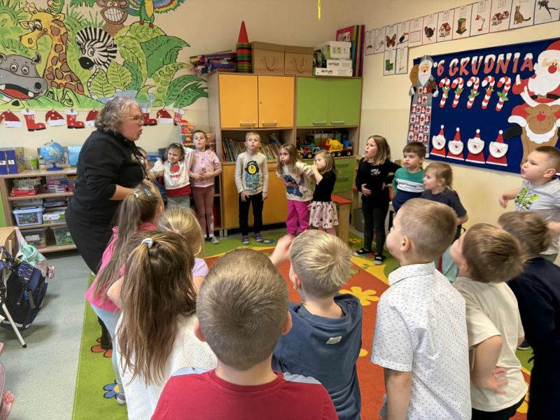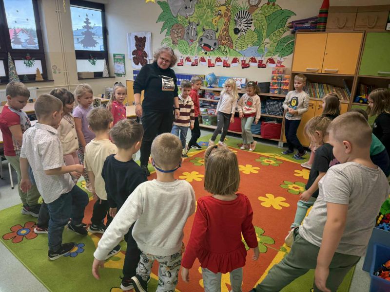 Pani Maja Falkiewicz, która od wielu lat prowadzi w naszej szkole koło teatralne, przeprowadziła w naszej grupie zajęcia przygotowujące nas do zbliżającego się świątecznego występu dla rodziców. Dowiedzieliśmy się jak przygotować ciało, mięsie twarzy i głos oraz jak właściwie oddychać podczas recytacji swojej roli oraz śpiewu.