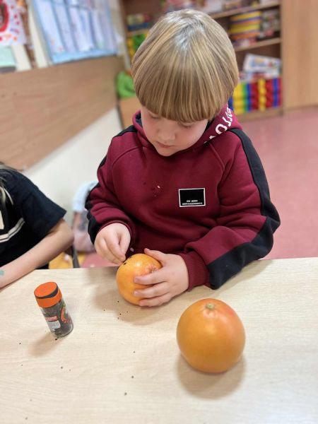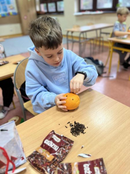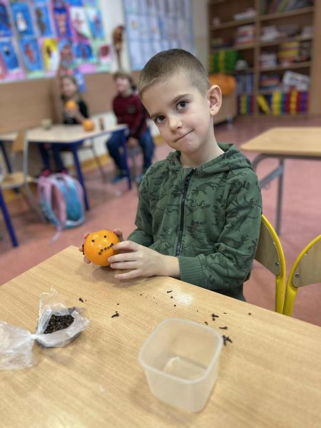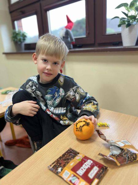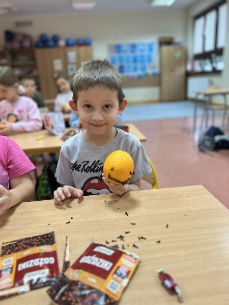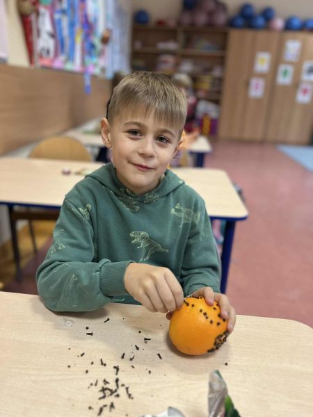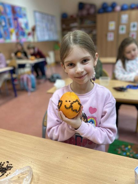 Uczniowie klasy 1d wzięli udział w wyjątkowych, pachnących zajęciach . Dzieci tworzyły własne, naturalne ozdoby, wbijając goździki w świeże pomarańcze. Podczas zajęć ćwiczyły motorykę małą, rozwijały kreatywność oraz poznawały tradycje związane z przygotowaniami do świąt.
