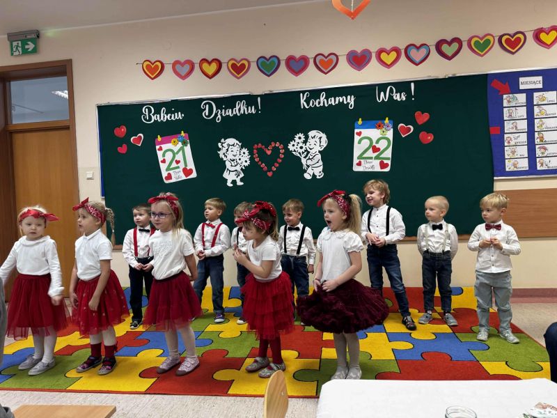 Dzień Babci i Dziadka w oddziale 0d był pełen radości i wzruszeń. Dzieci z wielkim zaangażowaniem zaprezentowały przygotowane wierszyki, piosenki i tańce. Następnie wręczyły własnoręcznie wykonane laurki i upominki. Spotkanie upłynęło w miłej, rodzinnej atmosferze i na długo pozostanie w naszej pamięci.