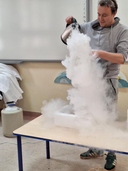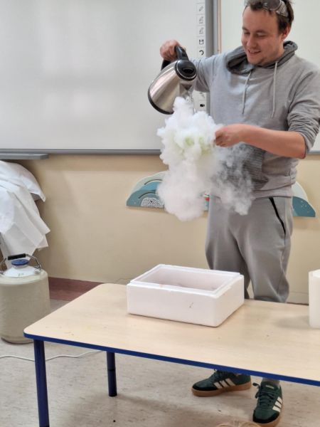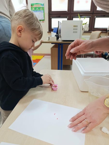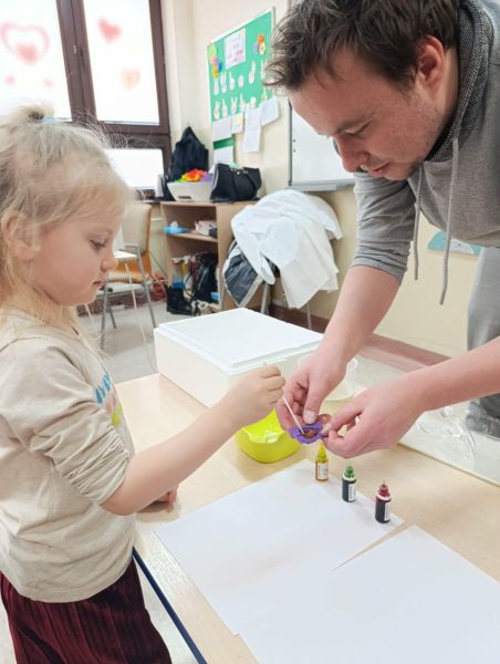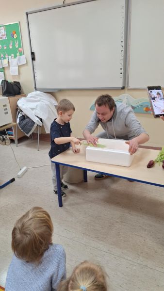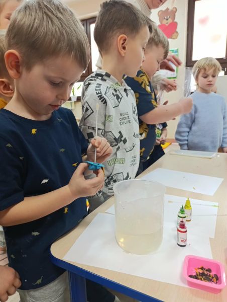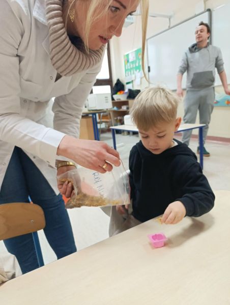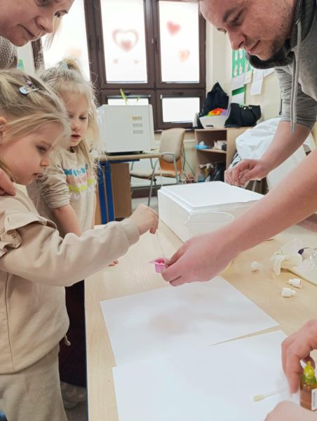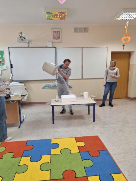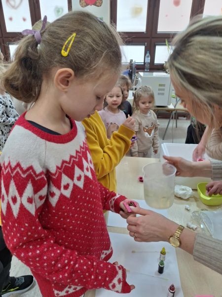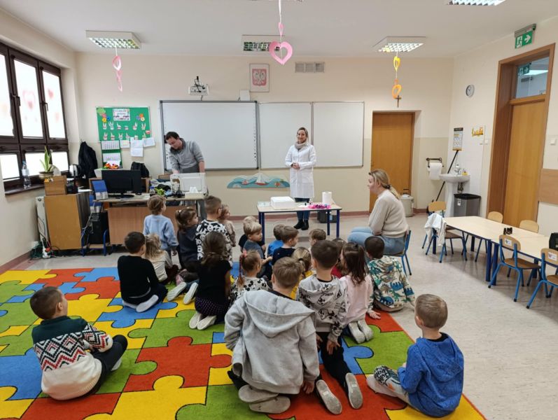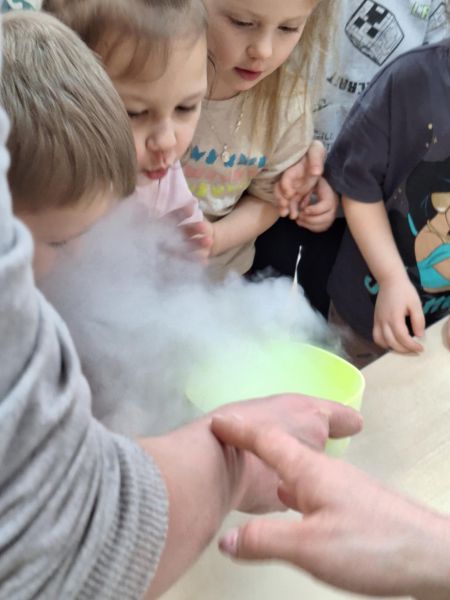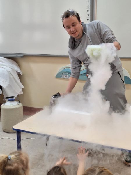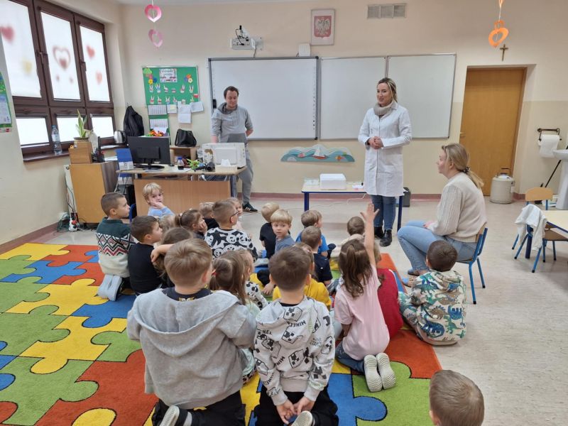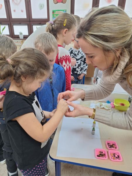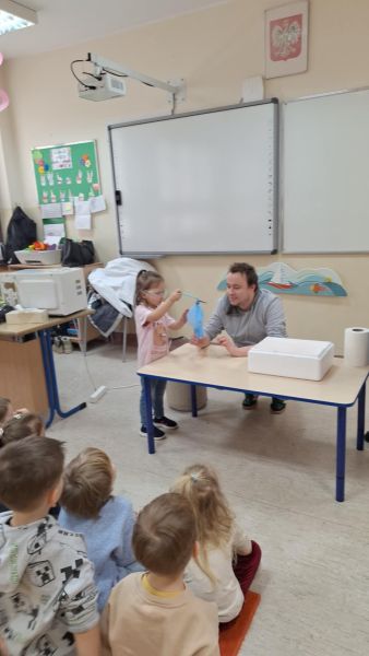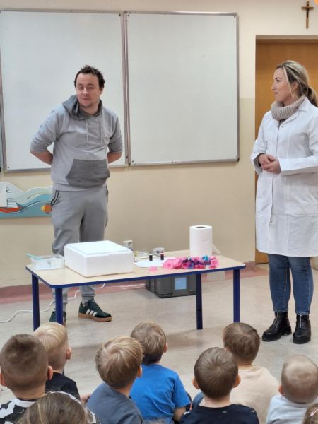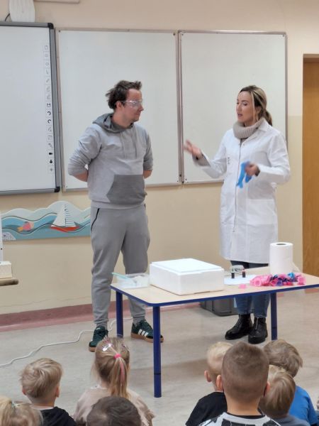 Dziś grupa 0c i 0d miała wyjątkowych gości. Odwiedziła nas pani Joanna, absolwentka naszej szkoły z kolegą panem Mateuszem. Nasi goście są Naukowcami z Uniwersytetu Gdańskiego i chętnie chcieli opowiedzieć o tym, czym się zajmuja na codzień. Były eksperymenty oraz warsztaty mydlarskie. Dzieci były zaciekawione, odpowiadały na pytania zadawane przez naszych Naukowców. Okazało się, że dzieci bardzo dużo wiedzą. Serdecznie dziękujemy za ciekawą lekcję.