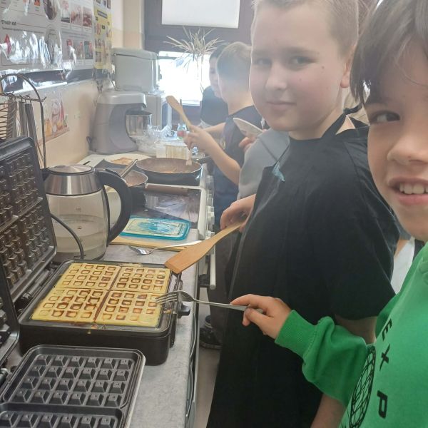 Słodkie śniadanie mistrzów – pancakes i gofry z jednego ciasta - Szkoła Podstawowa nr 2 w Bolszewie