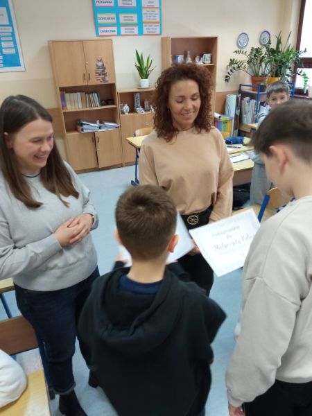 Zajęcia przebiegały w miłej i inspirującej atmosferze. Uczniowie chętnie angażowali się w proponowane aktywności, dzielili się swoimi spostrzeżeniami i z entuzjazmem podejmowali kolejne wyzwania. Warsztaty były nie tylko cenną lekcją języka polskiego, ale również okazją do rozwijania wyobraźni i kreatywności.