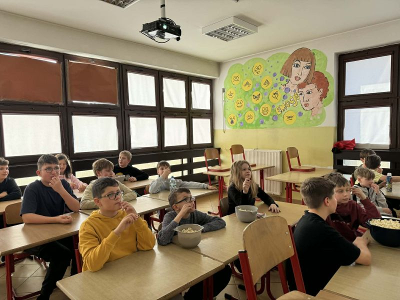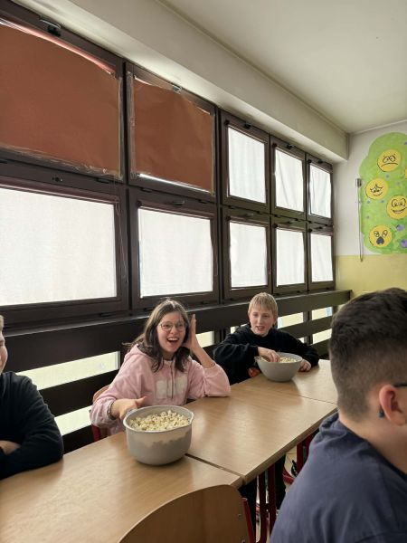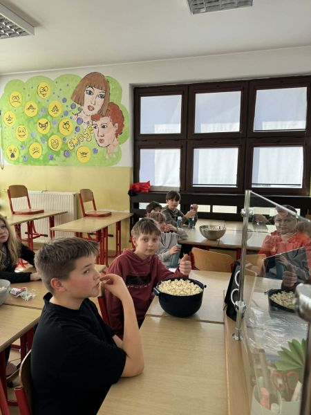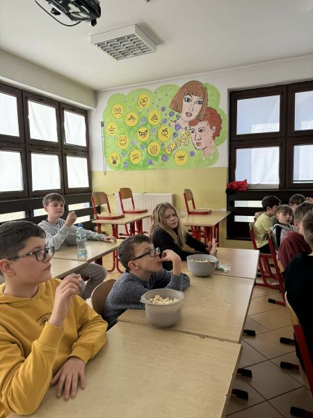 5 marca klasa 5c świętowała Dzień Kobiet. Był to bardzo miły i radosny dzień dla wszystkich dziewczyn z naszej klasy. Chłopcy przygotowali dla koleżanek drobne upominki, które sprawiły im wiele radości i wywołały uśmiechy na twarzach. Następnie cała klasa wspólnie obejrzała film. Seans odbył się w świetnej atmosferze, a żeby było jeszcze przyjemniej, wszyscy zajadali się pysznym popcornem. To był wyjątkowy dzień pełen życzliwości, uśmiechu i wspólnej zabawy.