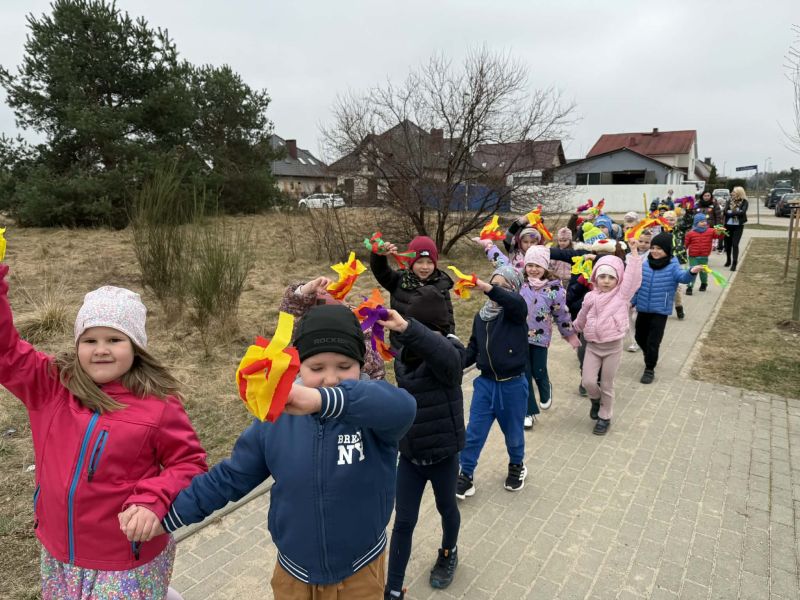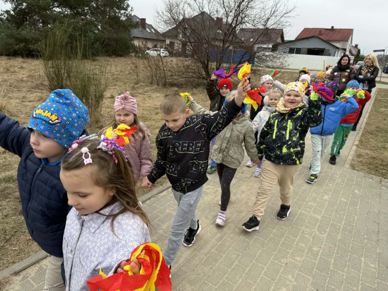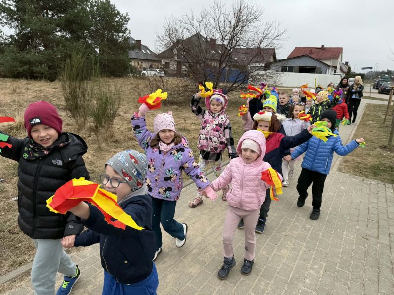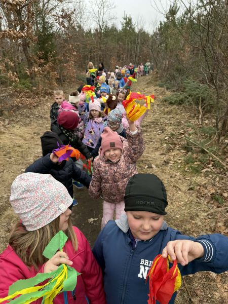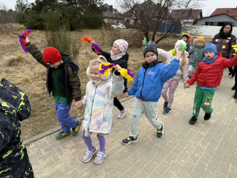 W piątek, 20 marca dzieci z oddziałów 0a, 0b i 0c wybrały się na długi spacer. Kolorowy pochód, jak co roku przeszedł ulicami Bolszewa. Dzieci spacerując śpiewały piosenki o wiośnie i obserwowały przyrodę, szukając zwiastunów wiosny. Zaglądaliśmy do przydomowych ogródków i odwiedziliśmy pobliski las. Możemy z całą pewnością powiedzieć, że już jest wiosna! Hurra!