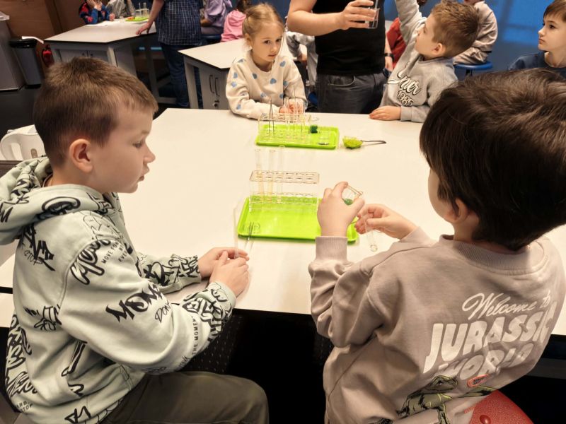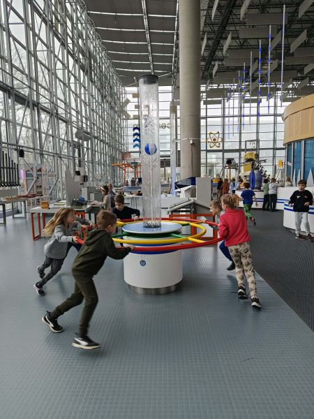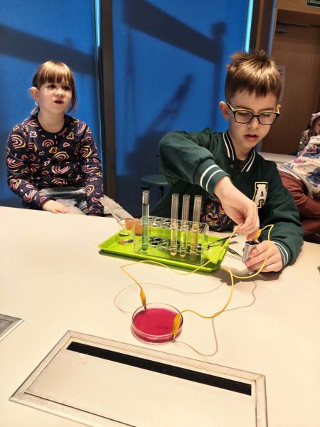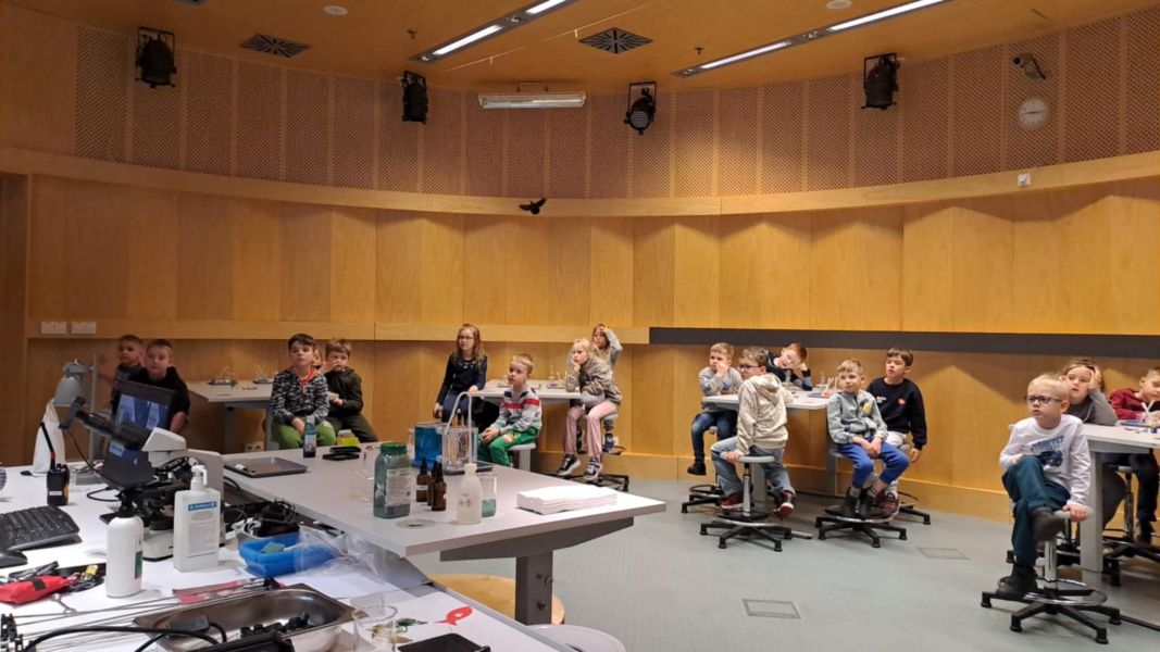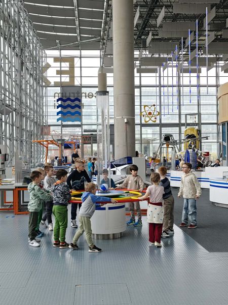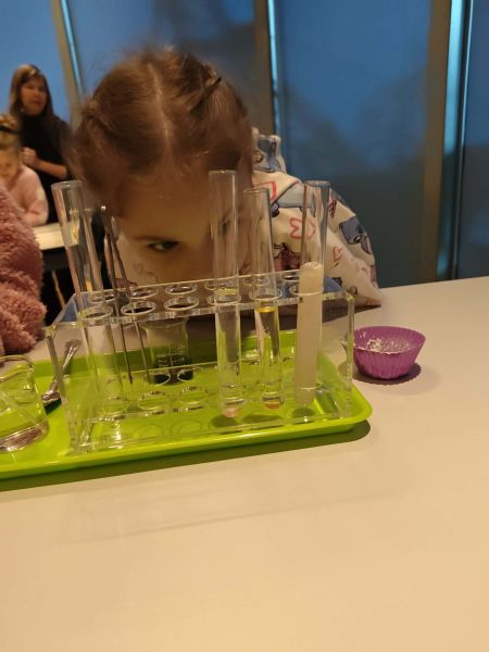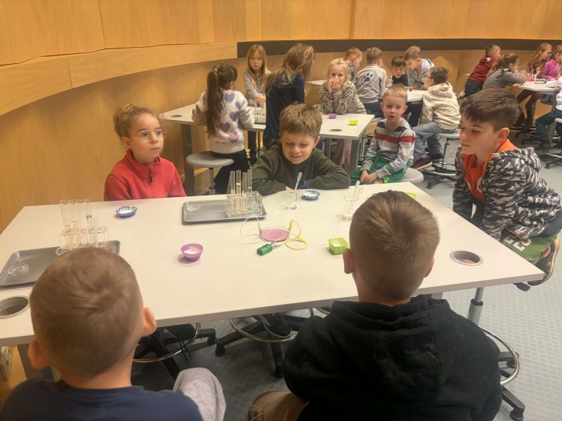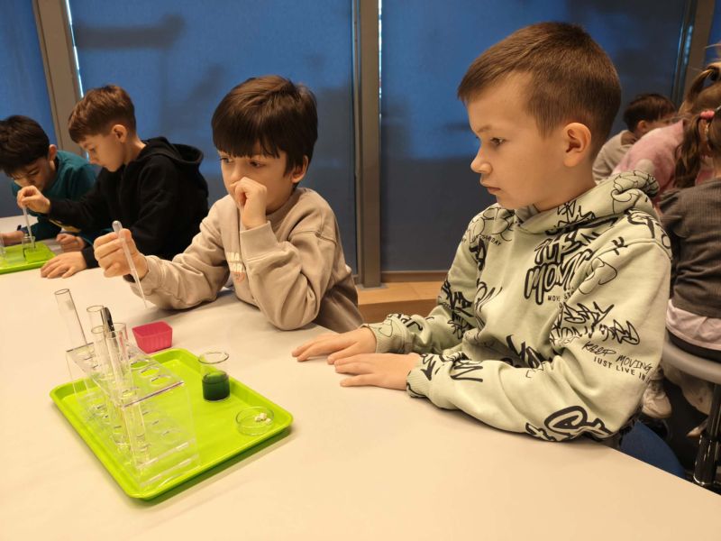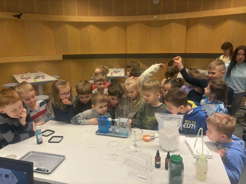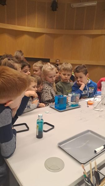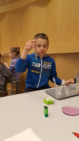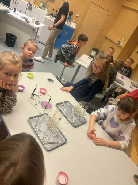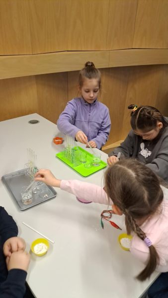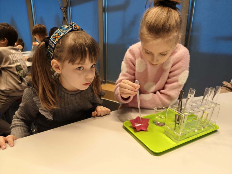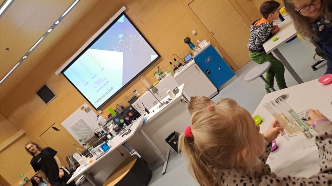 Uczniowie chętnie odpowiadali na pytania edukatorów i z dużym zaangażowaniem przeprowadzali proste reakcje w expowym laboratorium. Ponadto pierwszaki spędziły aktywnie czas na poznawaniu eksponatów gdyńskiego centrum i twórczym eksperymentowaniu. To było niezwykle radosne przedpołudnie!