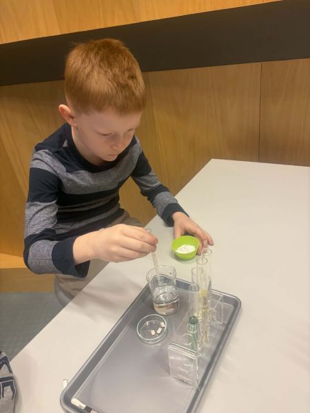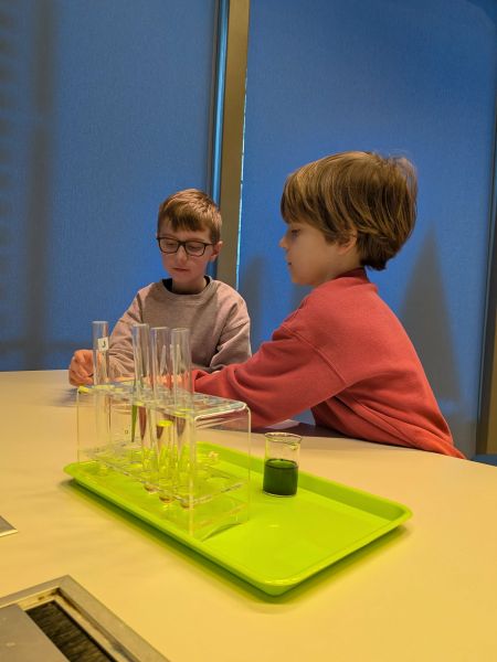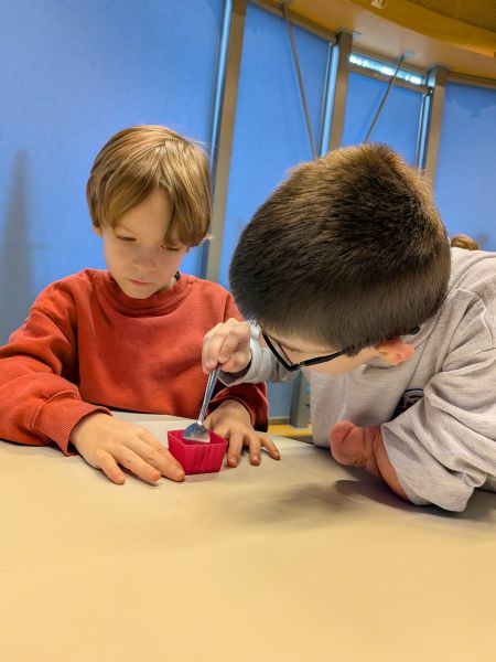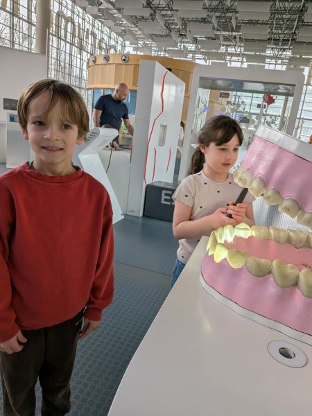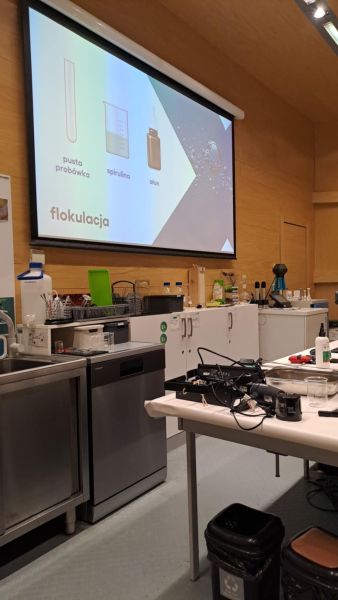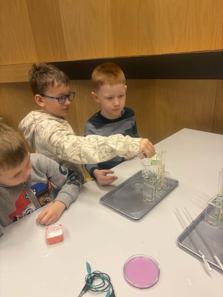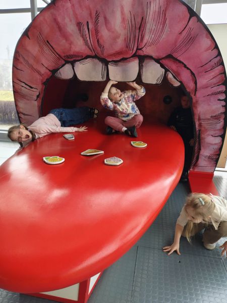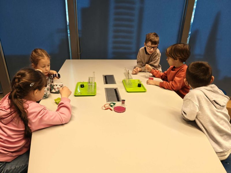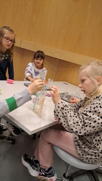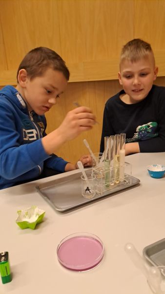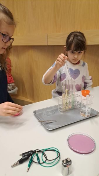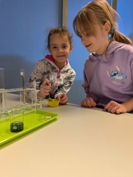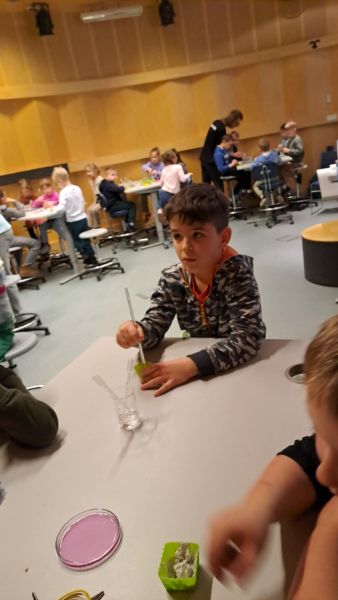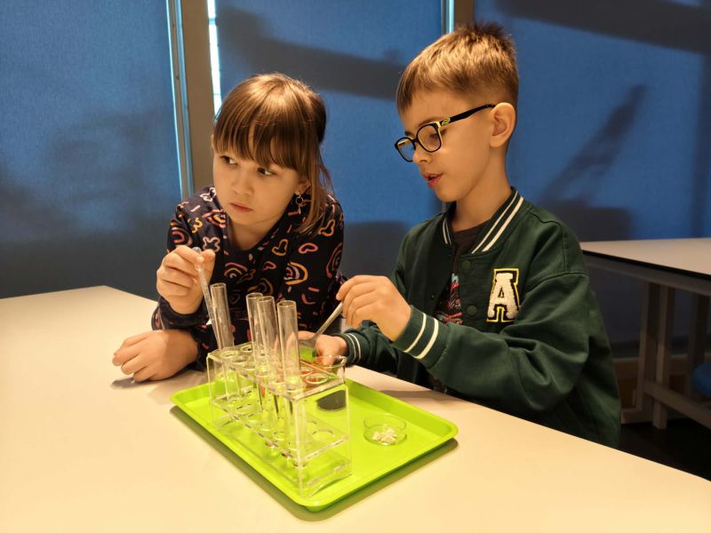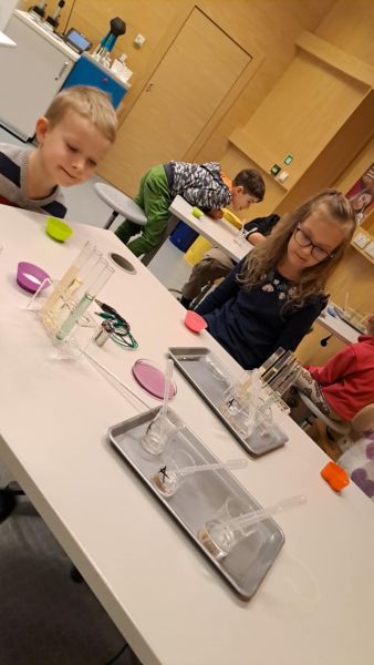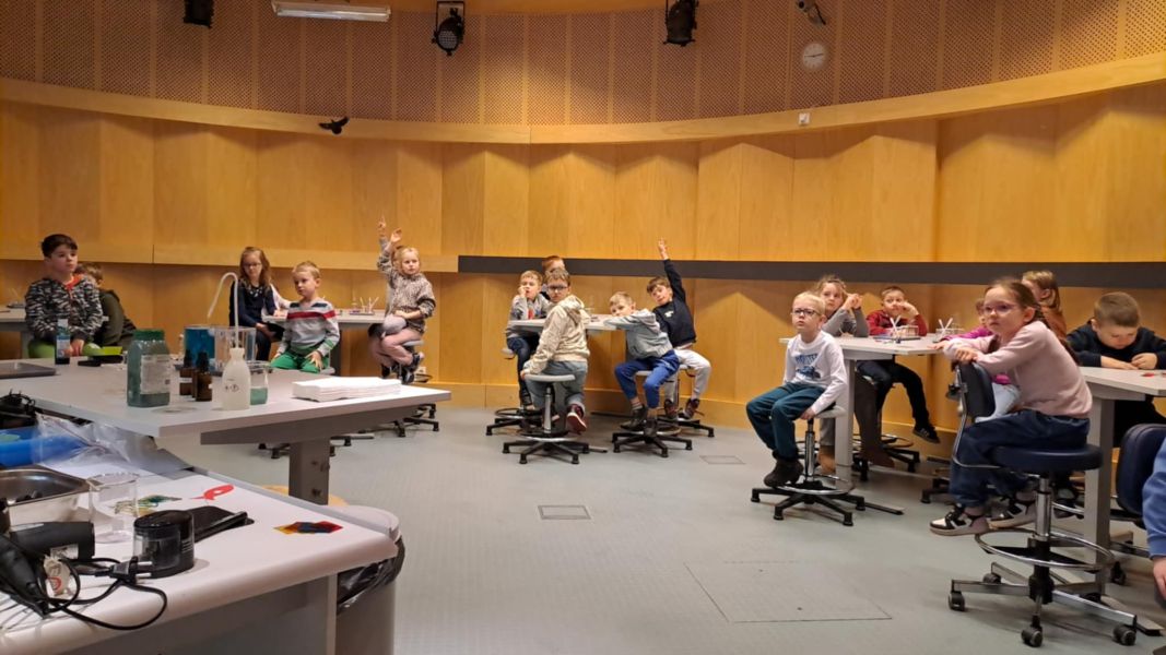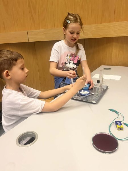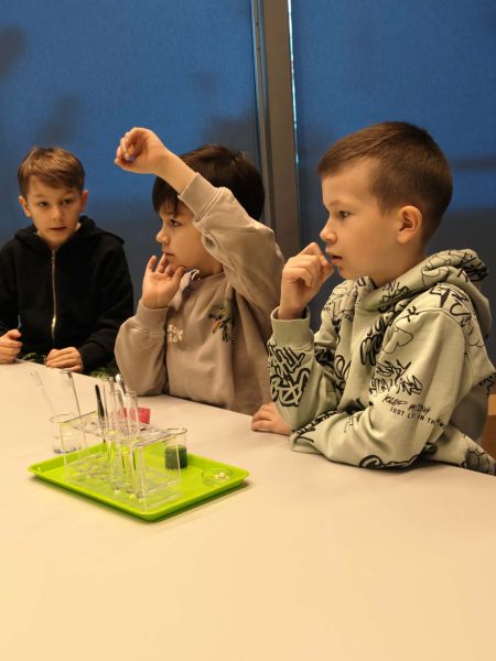 Uczniowie chętnie odpowiadali na pytania edukatorów i z dużym zaangażowaniem przeprowadzali proste reakcje w expowym laboratorium. Ponadto pierwszaki spędziły aktywnie czas na poznawaniu eksponatów gdyńskiego centrum i twórczym eksperymentowaniu. To było niezwykle radosne przedpołudnie!