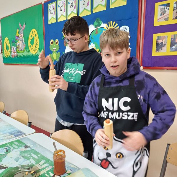 Uczniowie pracowali w grupach, dzieląc się obowiązkami i wspólnie podejmując decyzje dotyczące składników oraz sposobu przygotowania potraw.
