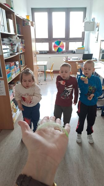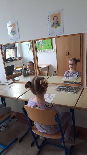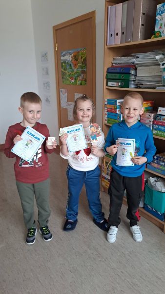 W tym tygodniu zakończyliśmy realizację zadań z projektu "Logopedyczne wędrówki - małe kroki w wielką mowę". Podczas ostatnich zajęć podsumowaliśmy zdobyte umiejętności i przypomnieliśmy sobie odwiedzone dotychczas stacje zadaniowe. W ramach powtórki, wykonaliśmy ćwiczenia artykulatorów, oddechowe oraz te, polegające na opisie ilustracji . Wymyślaliśmy też rymy do obrazków, dobieraliśmy w pary rymujące się słowa oraz ćwiczyliśmy wymowę przy lustrze. Nie zabrakło również zabaw z echem i magicznymi słowami. Na zakończenie uczestnicy otrzymali pamiątkowe dyplomy i nagrody w postaci naklejek.