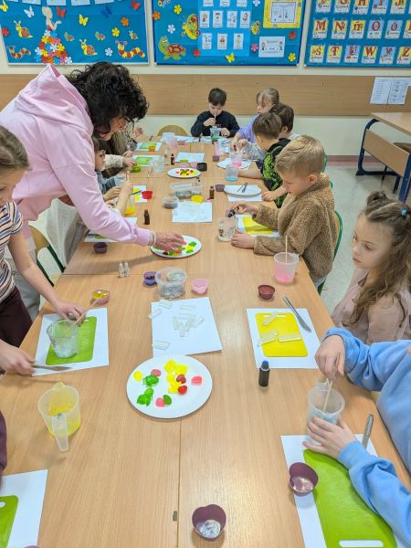 We wtorek, 31 marca, w klasie 1b zapanowała wyjątkowa, kreatywna atmosfera. Pod czujnym okiem pani Aleksandry Hazuki odbyły się świąteczne warsztaty, podczas których uczniowie mieli okazję własnoręcznie wykonać mydełka z gliceryny.
