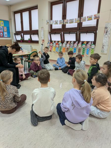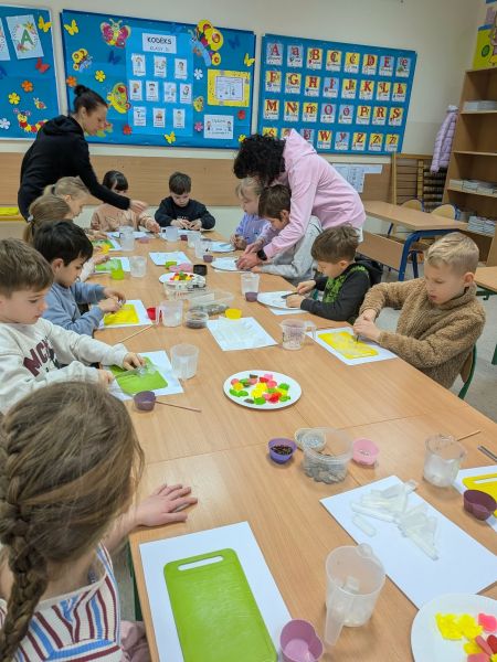 Dzieci z wielkim zaangażowaniem projektowały swoje wyroby, samodzielnie wybierając ulubione zapachy, intensywne kolory oraz unikalne wzory. Praca z ciepłą gliceryną była nie tylko świetną zabawą, ale też ciekawą lekcją sensoryki. Serdecznie dziękujemy pani Oli za poświęcony czas, cierpliwość oraz podzielenie się swoją pasją i wiedzą. Dzięki tej inicjatywie dzieci stworzyły piękne, pachnące upominki, które będą wspaniałą pamiątką nadchodzących świąt.