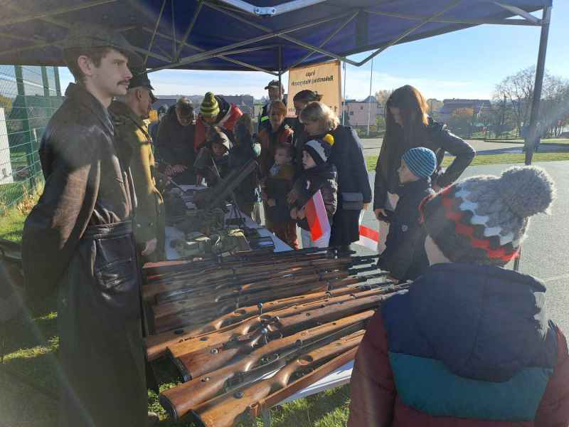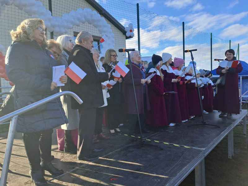 Z chorągiewkami, kotylionami i biało-czerwonymi wiatraczkami, marszowym krokiem dotarliśmy na boisko SP im. por. Jana Penconka. Wójt Gminy Wejherowo przywitał wszystkich przybyłych na świętowanie. Wspólnie z „Dziećmi Kalasancjusza” i Orkiestrą Dętą Gminy Wejherowo śpiewaliśmy pieśni patriotyczne. Podczas koncertu wybrzmiały słowa: „Pierwszej Brygady”, „Pierwszej Kadrowej”, „Rozkwitały pąki białych róż”, „Wojenko, wojenko”, „Przybyli ułani”, „Marsz Polonia”, „Szara piechota” czy „Mój rozmarynie”. Wielkim zainteresowaniem cieszyły się stoiska KGW, gdzie można było spróbować specjałów kuchni kaszubskiej i nie tylko. Pasjonatów historii zachwycił pokaz w wykonaniu stowarzyszenia „Grzmot”. Miło było obejrzeć album ze zdjęciami ostatniego żołnierza 1MPS, kpt. Aleksandra Pawelca. Były też repliki broni oraz umundurowania z czasów II RP. Dzieciom podobały się pokazy sprzętu wojskowego i strażackiego. Quiz historyczny umożliwił nam przypomnienie wydarzeń i dat związanych z Ojcami Polski Niepodległej.
