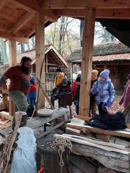 Przekraczając bramy średniowiecznej osady obronnej, uczniowie przenieśli się w świat swoich praojców, w którym mogli zobaczyć i dotknąć zbroi, założyć hełm, wziąć do ręki tarczę i miecz. Ponad to usłyszeli historię tego grodu i problemy jego mieszkańców związane z codziennym życiem, na które składało się przygotowanie pożywienia jak i zapewnienie bezpieczeństwa mieszkańcom.