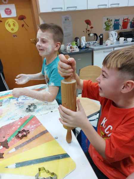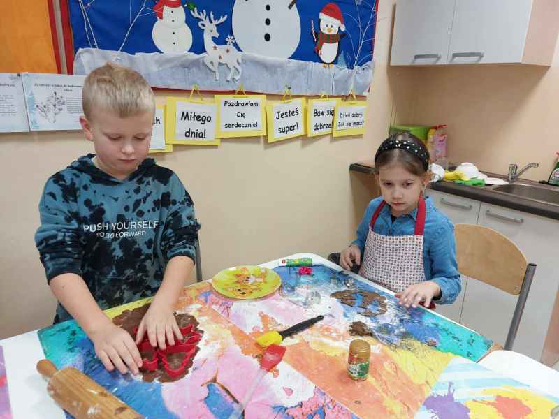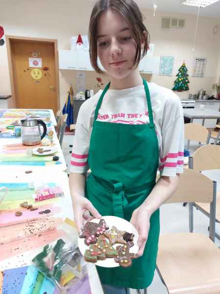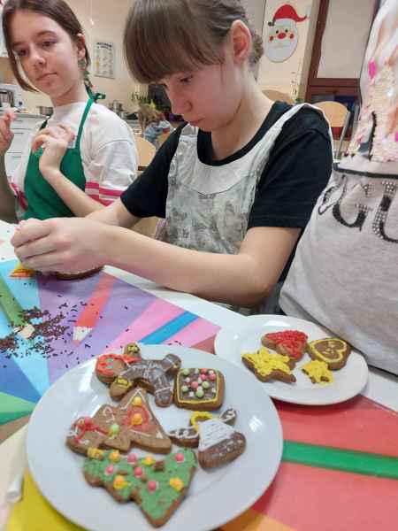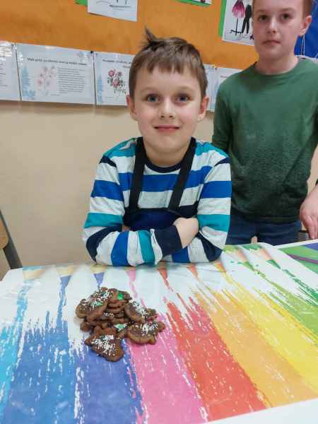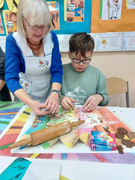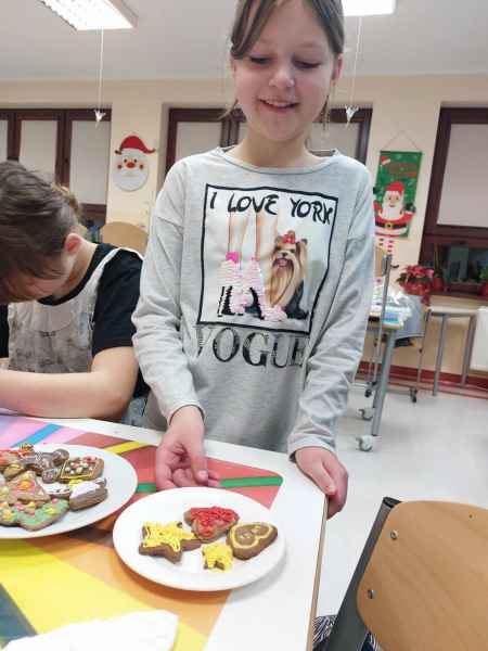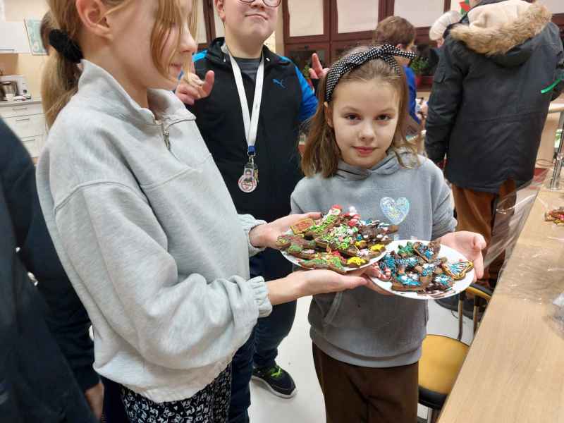 Jednak najwięcej przyjemności sprawiło dzieciom przygotowanie świątecznych pierników. Mali cukiernicy pod kierownictwem pań Teresy Miotk i Marii Miller z Koła Gospodyń Wiejskich w Orlu wałkowali ciasto, wykrawali foremkami różne kształty, a następnie po upieczeniu, dekorowali, wkładając w pracę mnóstwo kreatywności i serca.