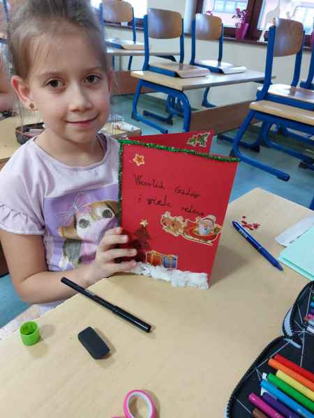 W ramach warsztatów przygotowujących do tradycyjnych kaszubskich Godów, bo tak w języku regionalnym nazywają się Święta Bożego Narodzenia, dzieci samodzielnie przygotowywały kartki świąteczne, umieszczając w nich życzenia pisane po kaszubsku.