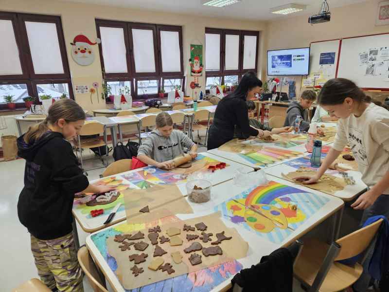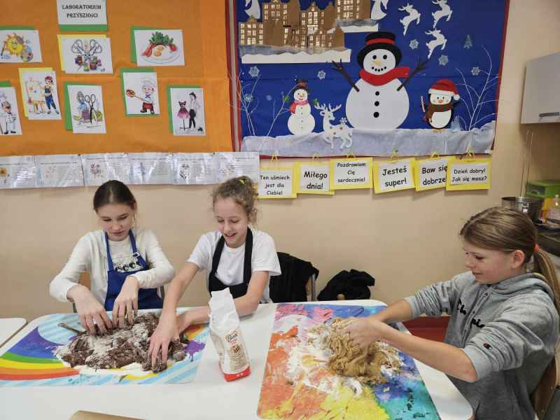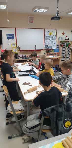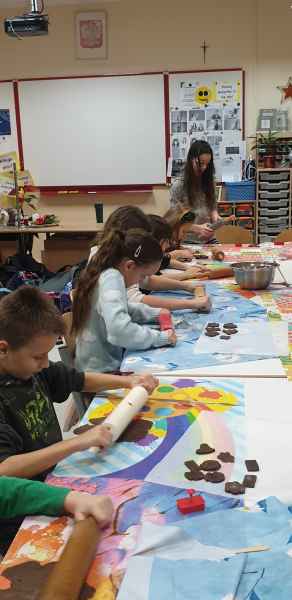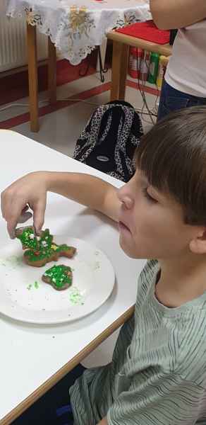 Wykonali ciasto piernikowe, wycinali różne wzory i je dekorowali, a na końcu zjedli.