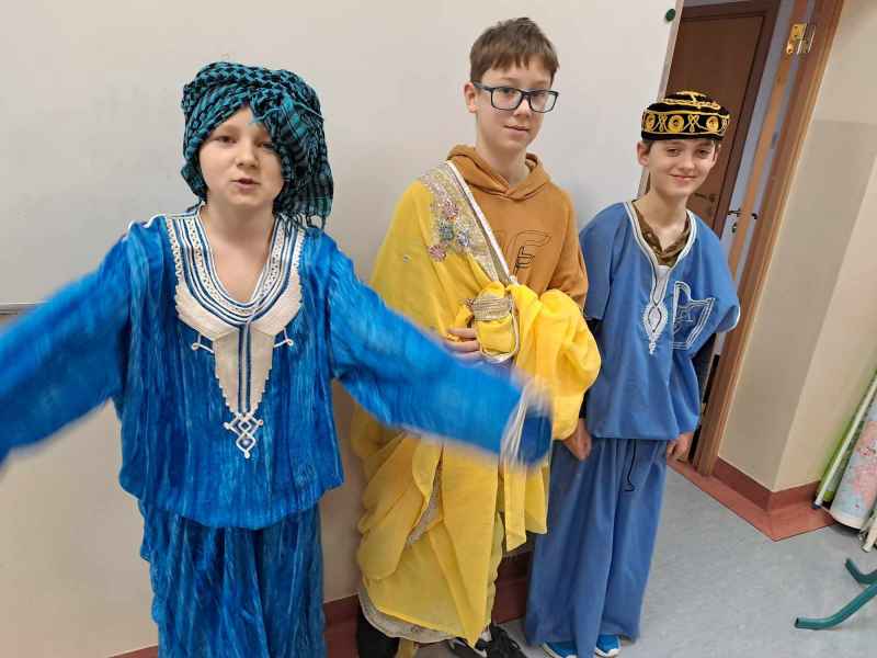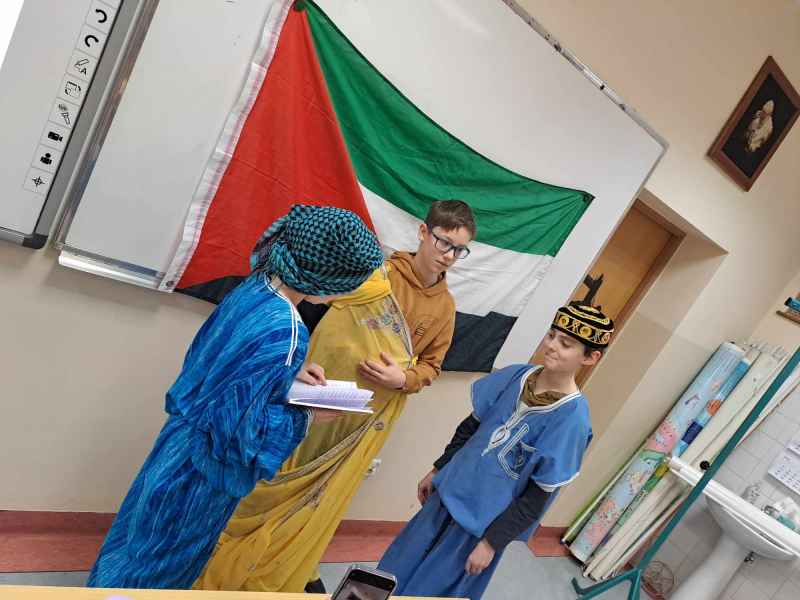 22.02 klasy piąte poznały pochodzenie Arabów. Dzieci dowiedziały się kim był i co zrobił Mahomet oraz jak narodził się islam. Igor S.,Hubert N. i Piotr K. z 5g odegrali scenkę nawiązującą do wydarzeń z Mekki z VIIw. Allach przekazał prorokowi 5 filarów islamu, które potem zapisano w Koranie.