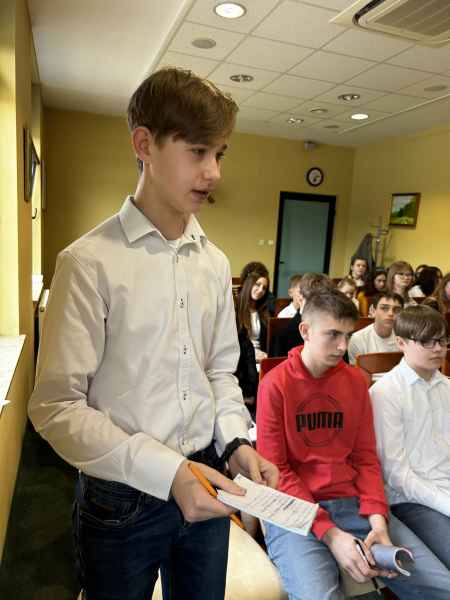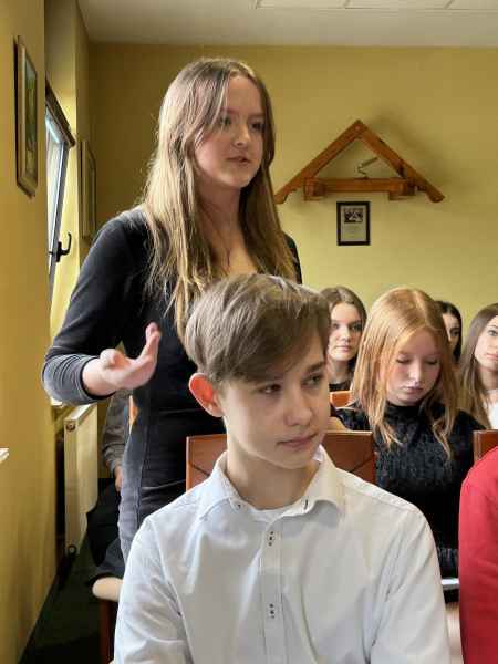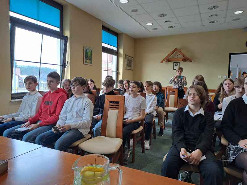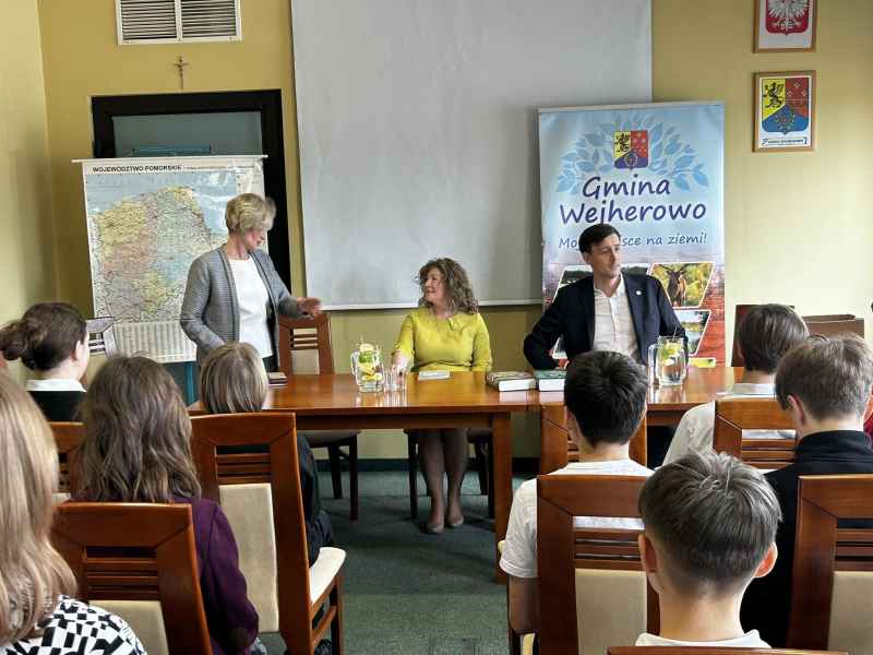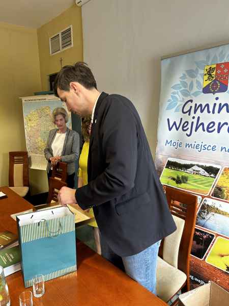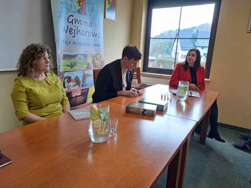 22 lutego 24 r. klasy 8 a i 8 e gościły w szkole wójta Gminy Wejherowo, pana Przemysława Kiedrowskiego. Podczas lekcji wiedzy o społeczeństwie młodzież poznała samorządy lokalne i regionalne w Polsce. Uczniowie przygotowali listy do Wójta i Rady Gminy oraz ponad 100 pytań.