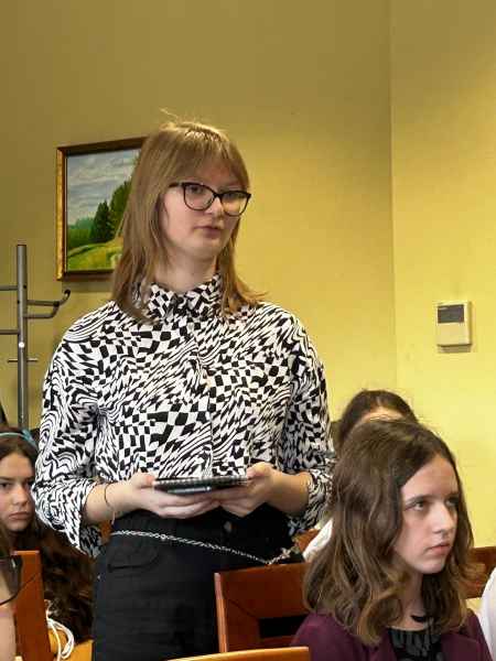 Uczniowie zadawali pytania związane z pracą wójta, 21 radnych oraz działaniem urzędu gminy. Ósmoklasiści byli ciekawi inwestycji realizowanych na terenach wiejskich w 2024 roku, działań ekologicznych czy pomysłów na regulację obszarów zalewowych. Padły pytania o terminy remontów dróg czy naszej szkoły. Młodzież interesowała się budową chodników, bezpiecznych traktów pieszych czy zwiększeniem ilości koszy na śmieci w Bolszewie, Górze, Orlu i Gościcinie. Uczniowie proponowali budowę ścieżek rowerowych, zainstalowanie trampolin w ArtParku czy powołanie Młodzieżowej Rady Gminy. Wójt Kiedrowski opowiedział o planie budowy pumptracku w Bolszewie i pomysłach na zapraszanie ciekawych osób na imprezy kulturalne, któresą cyklicznie organizowane dla wszystkich mieszkańców Gminy Wejherowo. Pan wójt mówił o znaczeniu pracy zespołowej, umiejętności komunikowania się z innymi, w tym petentami urzędu gminy. Wspomniał o najlepszym i najtrudniejszym momencie swojej pracy na tym stanowisku. Spotkanie trwało ponad 2 godziny. Nie udało się nam zadać wszystkich pytań, dlatego pan Kiedrowski zadeklarował możliwość kolejnych rozmów, w ustalonym wcześniej terminie. To nie była ostatniamożliwość dialogu klasy 8 a i 8 e z włodarzem „Naszego miejsca na Ziemi”.