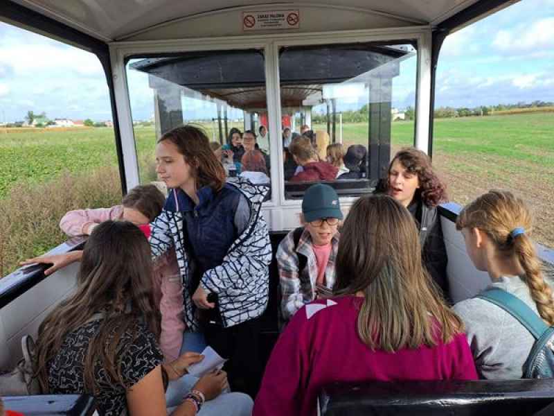 14 września wzięli udział w XXVII Festynie Archeologicznym w Biskupinie. Do osady nad Jeziorem Biskupińskim dojechaliśmy kolejką wąskotorową. Nieduża lokomotywa z nami w wagonikach przejechała trasę : Żnin – Rydlewo – Wenecja – Biskupin. Tematem przewodnim festynu archeologicznego była „ Matka Natura”. Uczniowie poznali: etapy udomowienia zwierząt w czasie rewolucji neolitycznej, hippomancję i wojów wczesnośredniowiecznych, techniki walki wojowników - żołnierzy od czasów prahistorycznych do nowożytności. Młodzież dowiedzieć się , kto opiekował się ludźmi w czasie pokoju i wojny oraz kto decydował o wybuchu i losach walk .Dzieci słuchały pogadanek: „ Zwierzęta w mitach”, „Rumun bajdurzy. O różnych kłobukach, skarbach i zaklętych zamkach”, „Pies – najlepszy przyjaciel człowieka”, „ Koń, jaki jest, każdy widzi”, „ Skrzydlaci drapieżcy”, „Magia roślin”. Uczniowie aktywnie uczestniczyli w warsztatach: tkackich, garncarskich, snycerskich, farbiarskich, garbarskich, warzenia piwa, archeologii podwodnej, łuczniczych i wielu innych. Zainteresowani obejrzeli inscenizację walki Rzymian z wojami słowiańskimi, grali w kości, odwiedzili kata i zielarkę, jedli podpłomyki , czy spotykając się z szamanem, interpretowali runy. Dużym zainteresowaniem cieszyły się pokazy: mody ludów Barbaricum, wykuwania zapinki żelaznej, szycia ubrań ze skór, rozpalania ognia za pomocą krzesiwa, wykonania bransolety metodą kucio, orki pradziejowej . W budynku Muzeum Archeologicznego zobaczyliśmy wystawę „Na skraju tęczy. Pod smoczą strażą”.