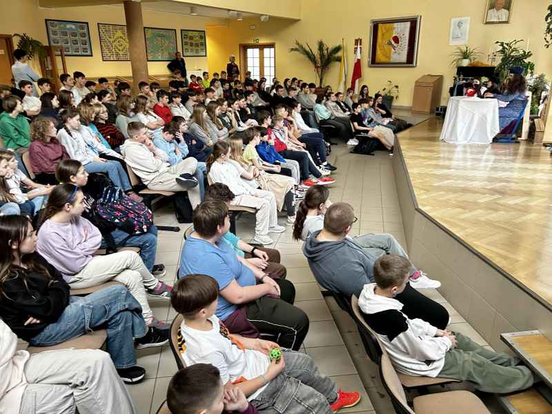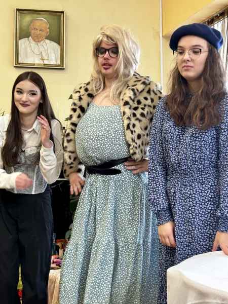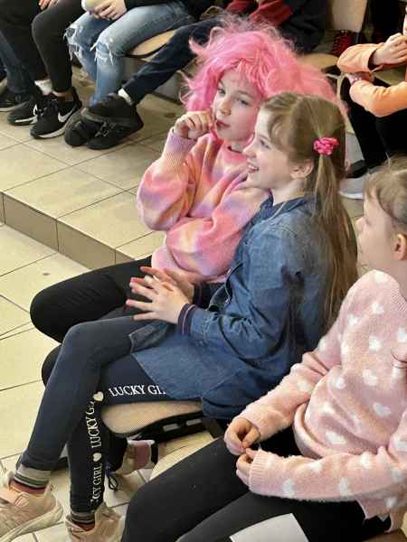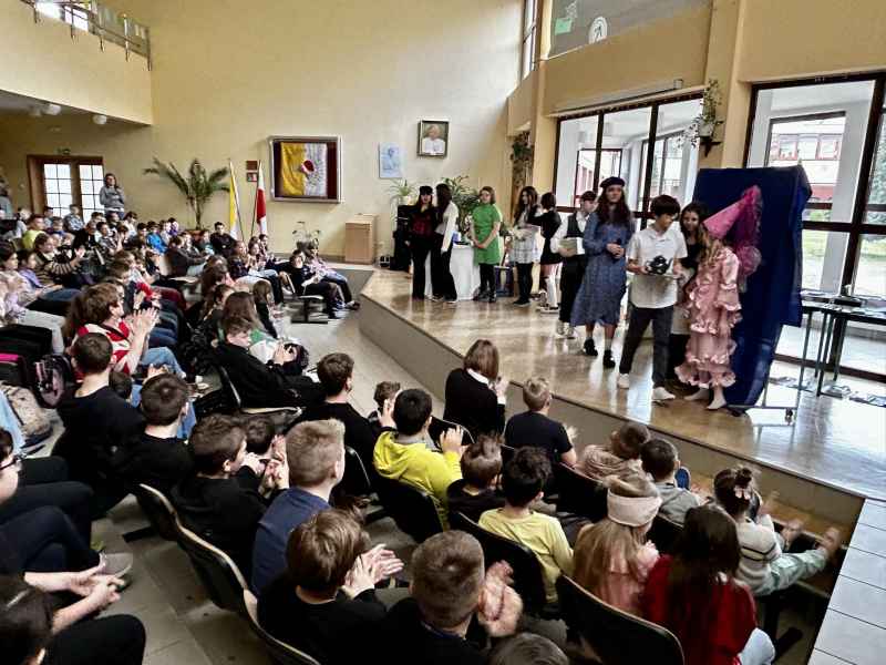 W dniu 23 marca 2024 roku odbył się Finał Szkolnego Projektu pt. „Jestem bezpieczny w sieci!”, który był urozmaicony spektaklem kabaretowym pt. „Internet to nie wszystko", przygotowanym przez Grupę Teatralną JBT pod kierunkiem p. Mai Falkiewicz. Przedstawienie zostało bardzo ciepło i ze zrozumieniem przyjęte przez społeczność szkolną. Trudne treści związane z bezpieczeństwem w sieci i świadomością cyfrową zostały przedstawione w ciekawy i wesoły sposób. Spektakl, w którym WojtekBrzeskiwykreował postać Caroline, spotkał się z entuzjazmem.Młody aktor mocno przerysował swojąkreacją, aby tym bardziej zwrócić uwagę na problem fałszywej tożsamości w sieci, z którym może spotkać się każdy, niezależnie od wieku i płci. Na szczególne wyróżnienie zasługuje innowacyjny pomysł Sergiusza Galiniewskiego, który umożliwił Zuzannie Kobieli zagranie sceny z postacią wygenerowaną przez AI (sztuczną inteligencję). Tego jeszcze w historii szkoły i grupy teatralnej nie było! Aktorka rozmawiała z postacią sztucznie wygenerowaną, to było niezwykłe! Jak myślicie, czy sztuczna inteligencja jest w stanie zastąpić ludzi?