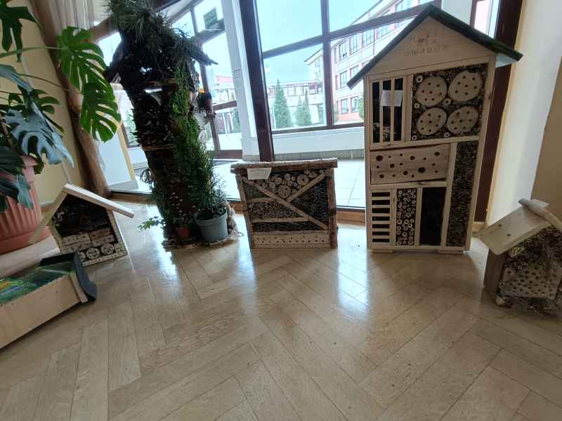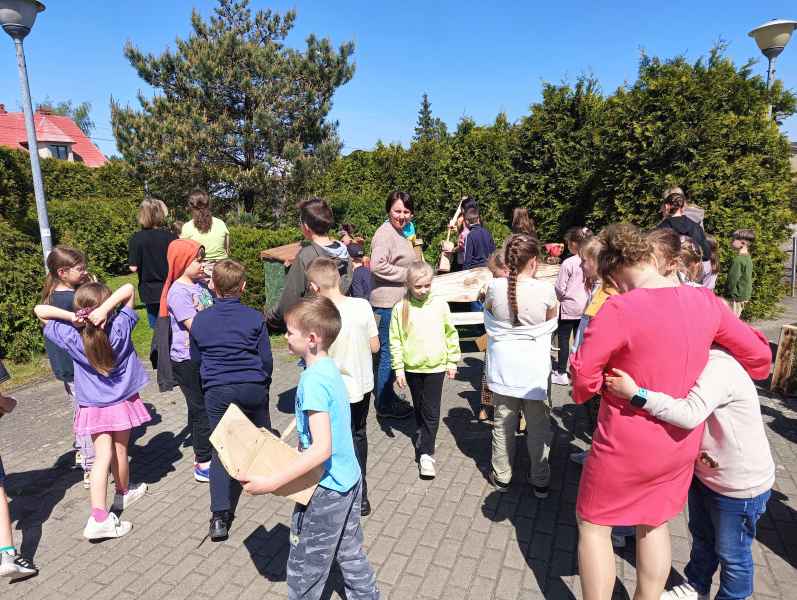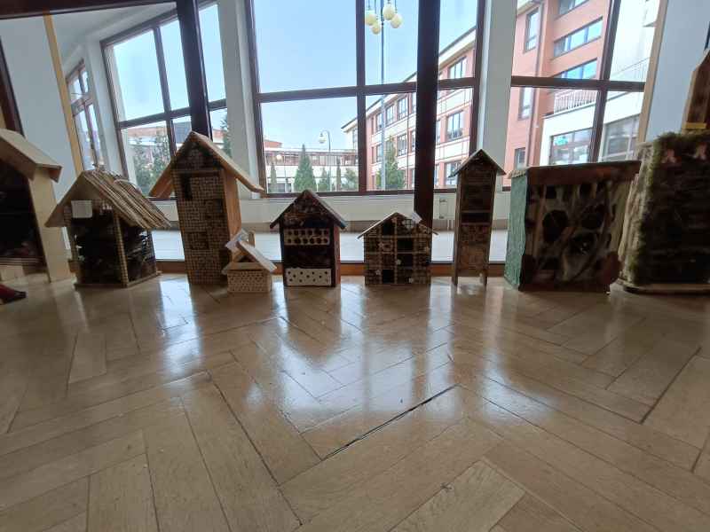 - rozwijanie wyobraźni i kreatywności uczniów oraz ich rodzin poprzez wykorzystanie różnorodnych elementów przyrodniczych (patyki, szyszki, trzcina) do budowy hotelu dla owadów pożytecznych i zapylających;