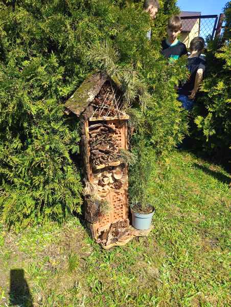 Wszystkim uczestnikom konkursu gratulujemy i dziękujemy za zaangażowanie w przygotowaniu wspaniałych hoteli! Zostały one umieszczone w zielonej strefie naszej szkoły. Niech służą owadom dla dobra środowiska!