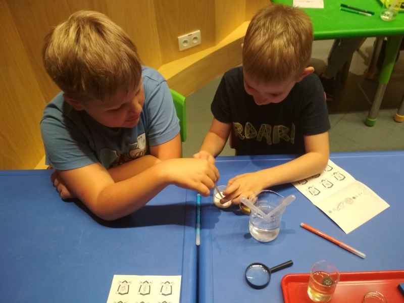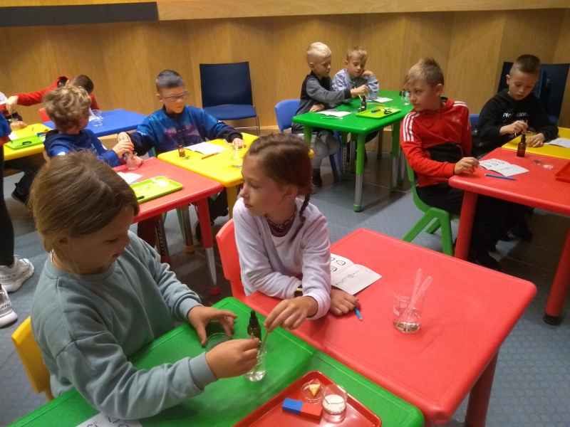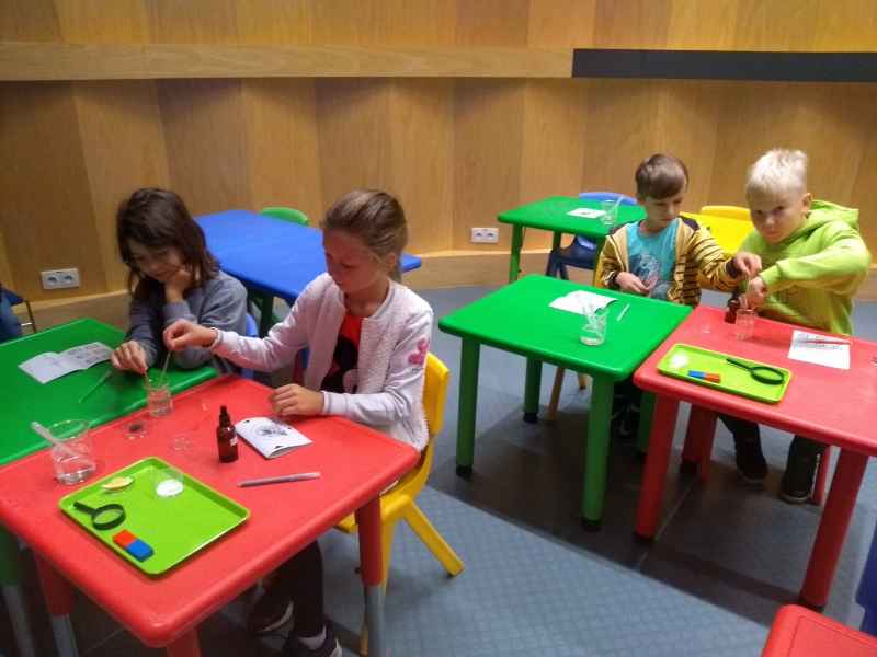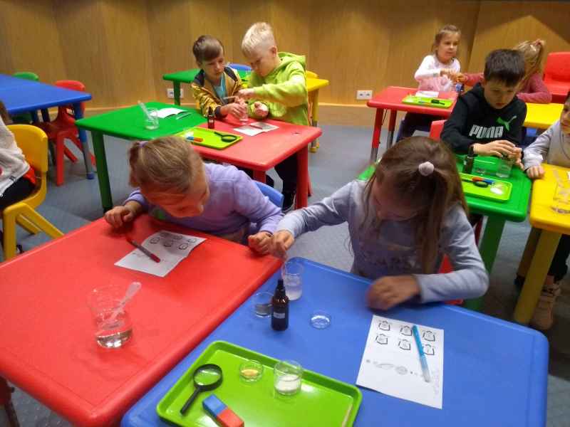Potwierdzeniem zdobytych wiadomości są odznaki w dzienniku pokładowym. Po zakończonych warsztatach uczniowie eksplorowali wystawę stałą. Dzieciom najbardziej podobał się: symulator jazdy samochodem, skaner ciała, krzywy domek, grzęzawisko oraz projekcja widzenia różnych zwierząt.