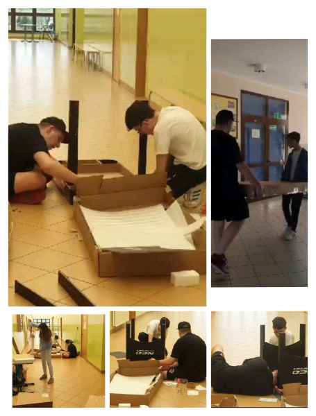 17 maja 2024r. wraz z uczniami naszej szkoły oraz jedną z mam, na której pomoc zawsze można liczyć, rozpoczęliśmy montaż i instalację gier korytarzowych (zakupionych po wcześniejszych ustaleniach, z niewykorzystanych na warsztaty środków, ze składek na RR).