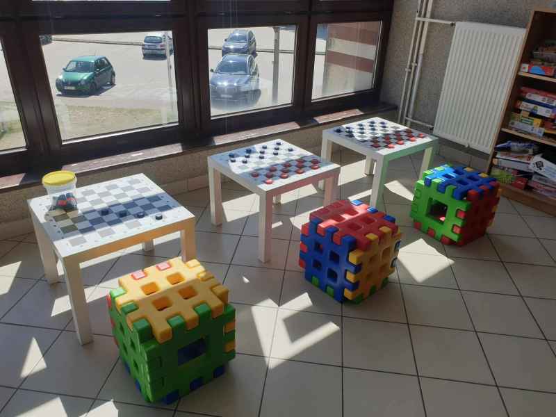 - 3 stoliki do gier planszowych typu: szachy, warcaby, kółko i krzyżyk, 4 w rzędzie... (B1 pierwsze piętro,