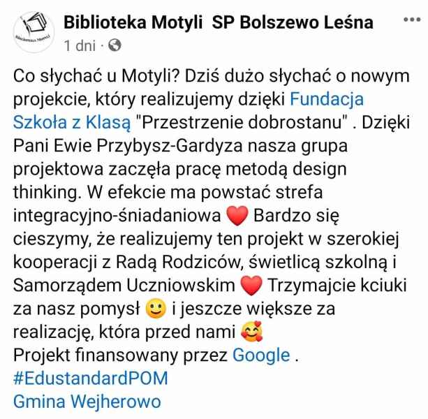 Jakiś czas temu p.Agnieszka wraz z p.Pauliną z Rady Rodziców wsparły p.Małgosię z biblioteki i wspólnymi siłami stworzyły i złożyły projekt do fundacji.