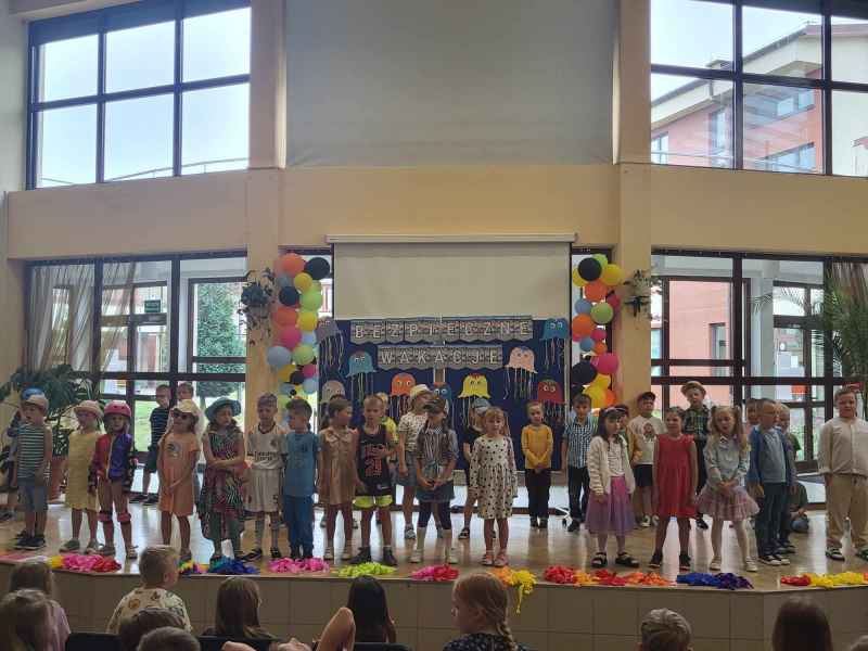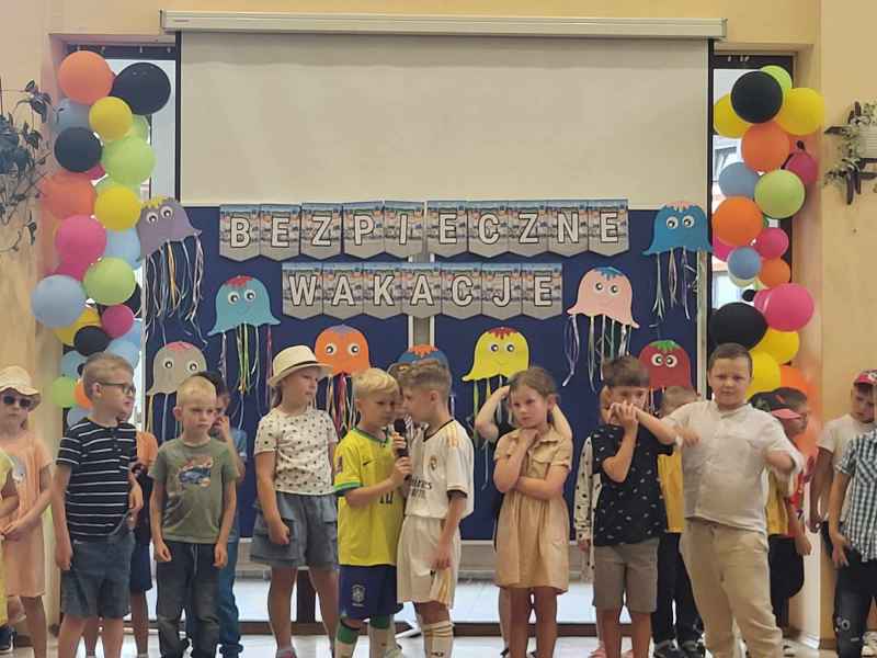 Wychowankowie oddziałów 0a I 0b zaprezentowali starszym koleżankom i kolegom apel pt. "Bezpieczne wakacje". Głównym celem występu było przybliżenie zasad bezpiecznego spędzania czasu wolnego - z racji zbliżających się wakacji.
