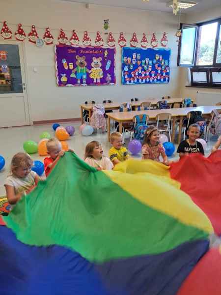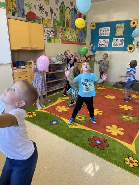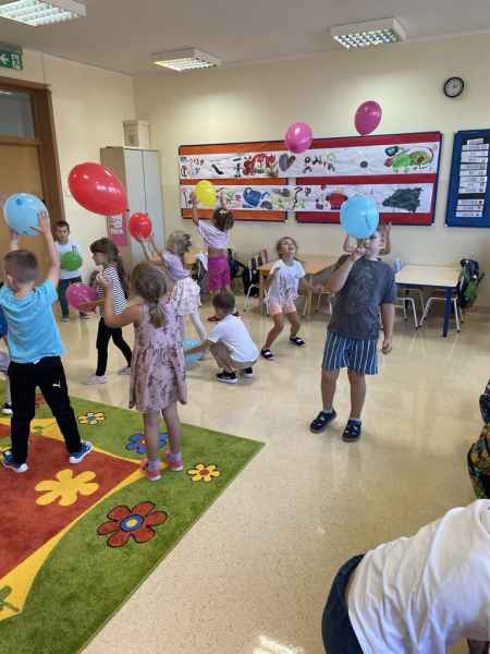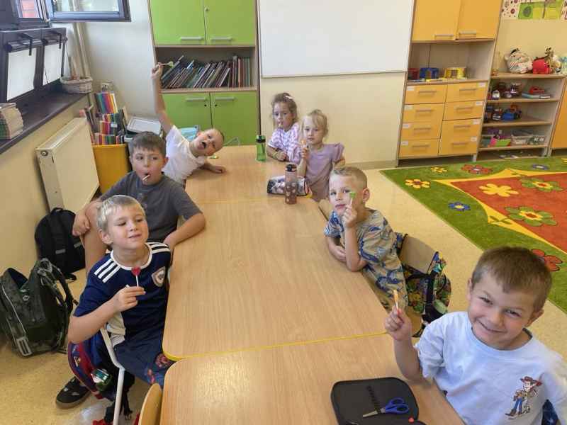 „Buzię mam dziś uśmiechniętą, bo mam dzisiaj swoje święto. Śpiewa lala, śpiewa miś, przedszkolaka święto dziś.”