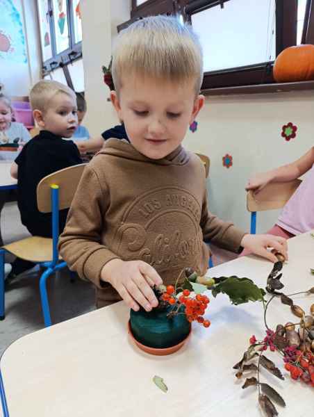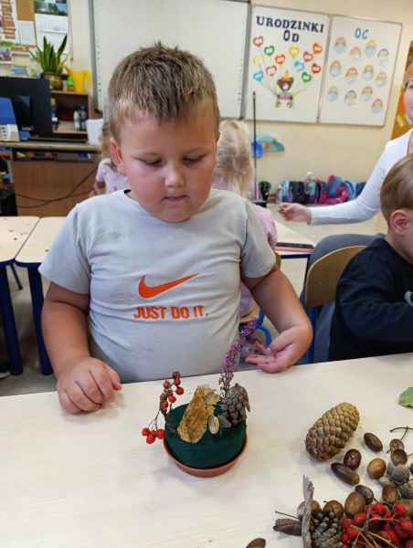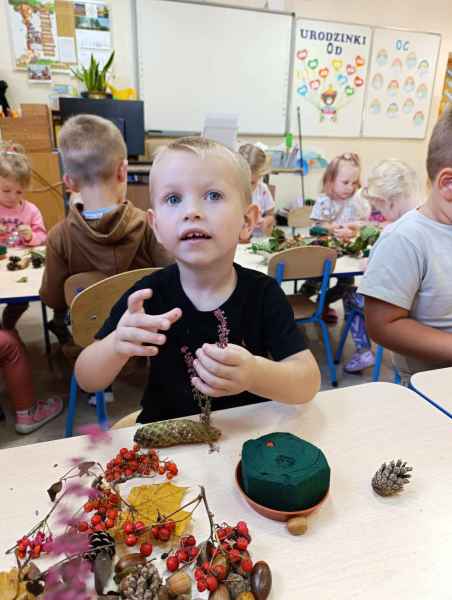 W klasie 0d jesień pełną parą! W ubiegłym tygodniu dzięki pomocy jednej z mam przygotowaliśmy warsztaty florystyczne z użyciem darów jesieni. Była jarzebina, liście, żołędzie, a przede wszystkim mnóstwo dobrej zabawy. Kolejnego dnia mogliśmy zdjąć skarpetki i przejść naszą ścieżką sensoryczną. Czasu mamy mało, pracy dużo ale... 30.10 mogliśmy się na chwilkę zatrzymać i uczcić Dzień Chłopaka. Było ciekawie, co potwierdzi nasza fotorelacja.