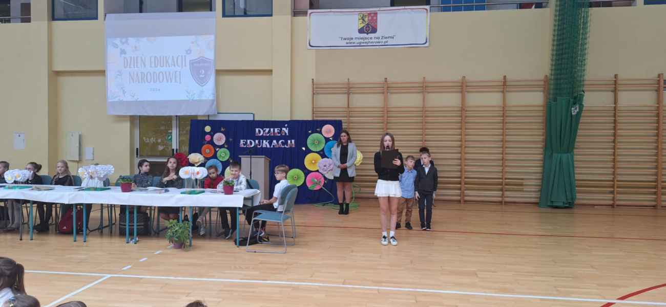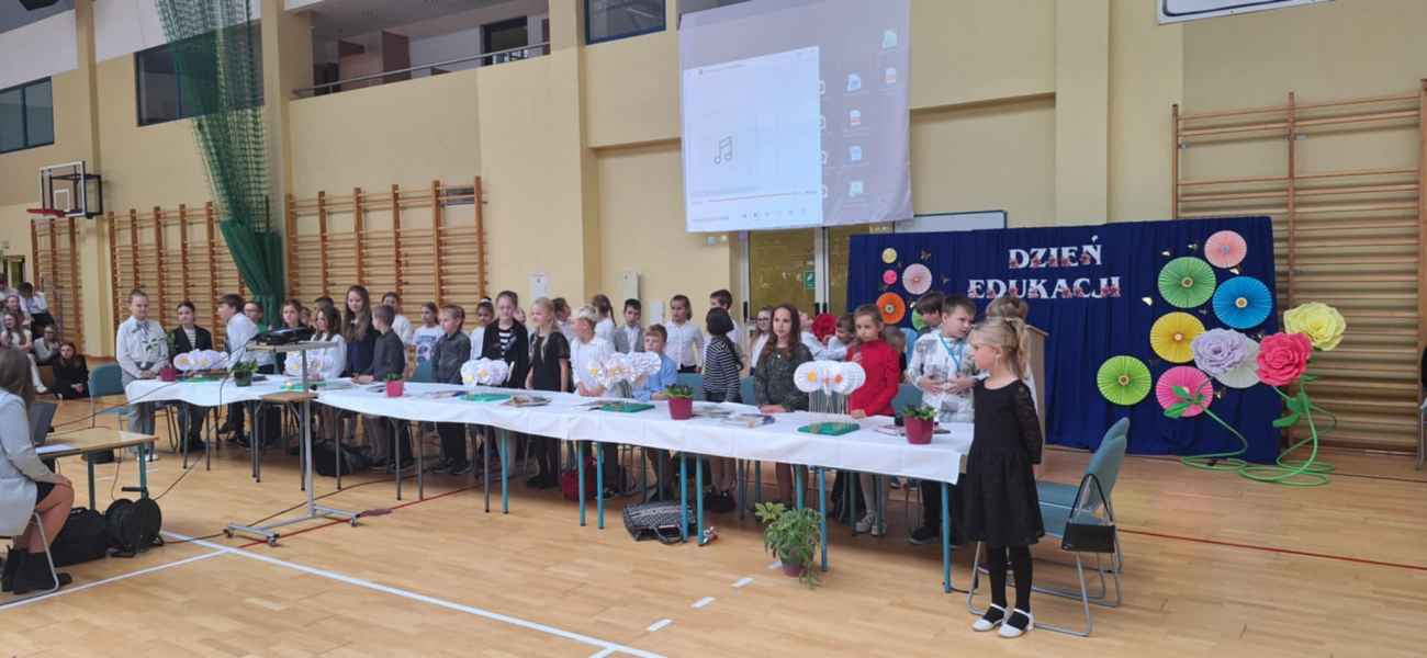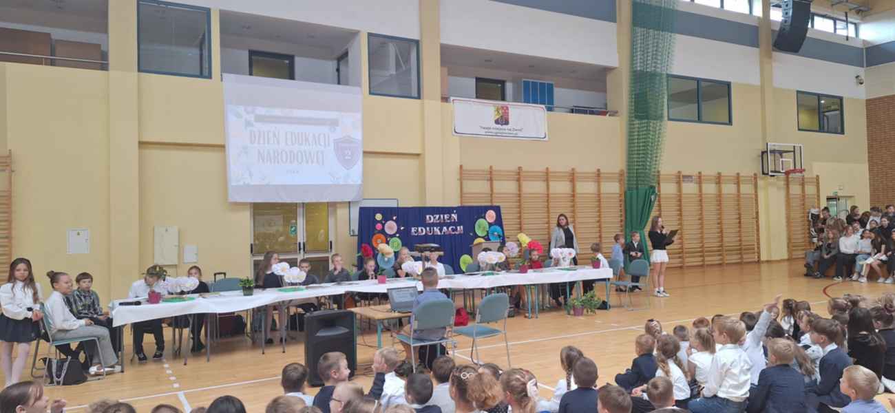 Takimi słowami uczniowie klas 3c i 3d przywitali zgromadzoną społeczność naszej szkoły na płycie hali widowiskowo-sportowej. W miniony piątek, 11 października na uroczystym apelu z okazji Dnia Edukacji Narodowej wszyscy uczniowie wraz z nauczycielami wspólnie świętowali ten szczególny dzień.