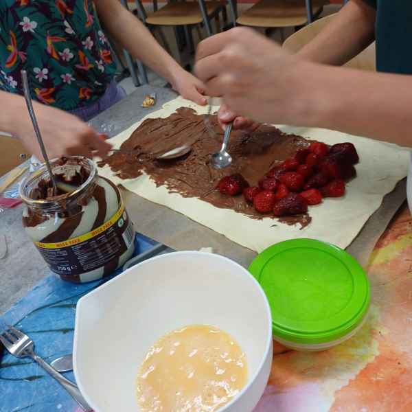W piątek, 11 października, uczniowie klasy 5 a zainaugurowali zajęcia kulinarne w Laboratorium Przyszłości. Przygotowywali wymyślony przez siebie deser, pamiętając o tym, aby był on przyjemny w smaku, ale też i zdrowy. Uczniowie wykorzystali do tego ulubione owoce, galaretki, przygotowali ciasto francuskie z jabłkowym musem, a także czekoladę do polewy deserowej.