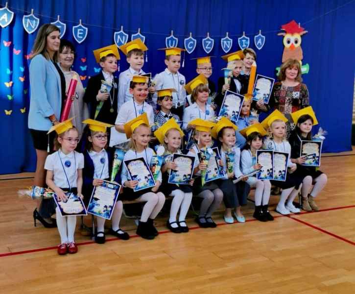 Następnie wychowawczynie poszczególnych klas wręczyły swoim uczniom pamiątkowe dyplomy, upominki oraz długo oczekiwane przez dzieci legitymacje uczniowskie. Z okazji tego święta wszyscy uczniowie klas pierwszych otrzymali pamiątki ufundowane przez Radę Rodziców pod postacią kolorowych piłeczek.