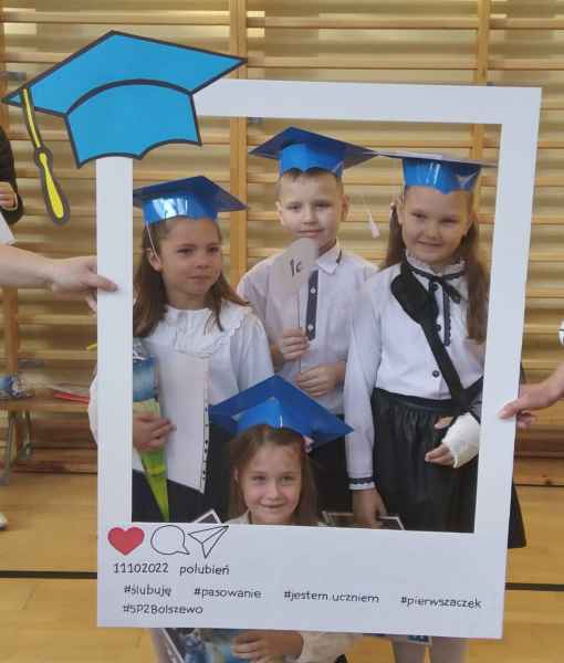 We wtorek 11 października 2022r. w Szkole Podstawowej nr 2 w Bolszewie miało miejsce niezwykle ważne wydarzenie dla naszych najmłodszych dzieci. W tym dniu odbyła się Uroczystość Ślubowania i Pasowania uczniów klas pierwszych. W imprezie wzięli udział dyrektor szkoły Pani Bożena Brzuzy, v-ce dyrektorki Panie Dorota Sychowska i Katarzyna Paczoska, a także rodzice, najbliżsi oraz rodzeństwo naszych pierwszaków, którzy licznie zebrali się na trybunach, aby uczestniczyć z dziećmi w tym ważnym dla nich dniu.