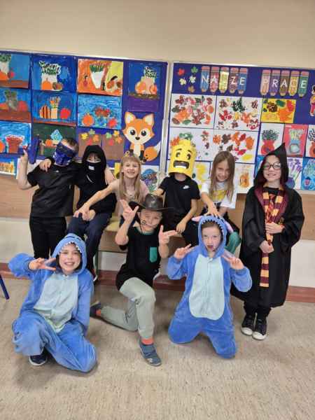 Dnia 30 listopad obchodziliśmy w szkole Dzień Postaci z Bajek. Nie zabrakło tego dnia w naszej szkole księżniczek, kociaków, Harrego Pottera, Stich i wielu innych.