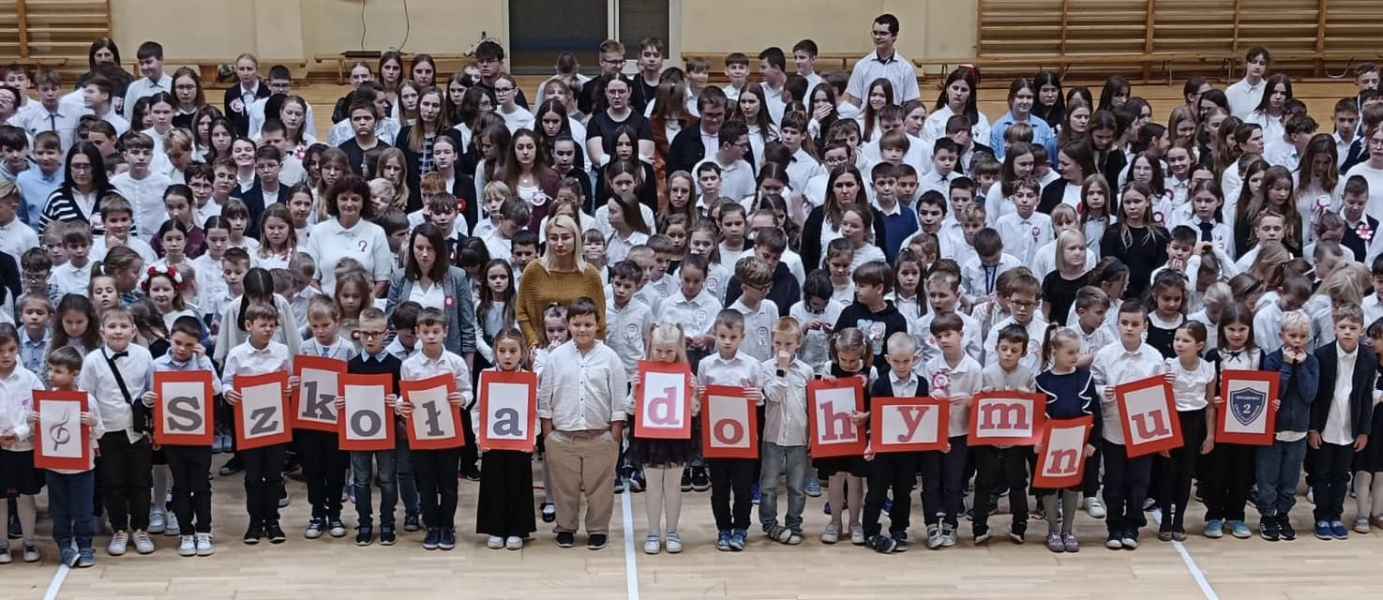 8 listopada nasza szkoła, jak co roku, włączyła się do akcji Ministerstwa Edukacji Narodowej „Szkoła do hymnu” i o godz. 11:11 cała społeczność naszej placówki na hali widowiskowo - sportowej odśpiewała hymn państwowy „Mazurka Dąbrowskiego”. Wydarzeniu towarzyszyły ogromne emocje, ponieważ niecodziennie mamy okazję śpiewać nasz hymn państwowy w takich okolicznościach. Gratulujemy wszystkim wspaniałej postawy młodych patriotów.