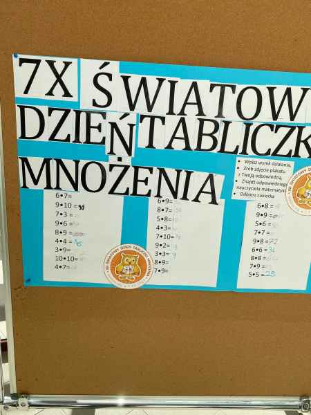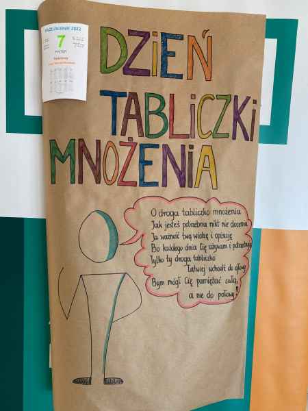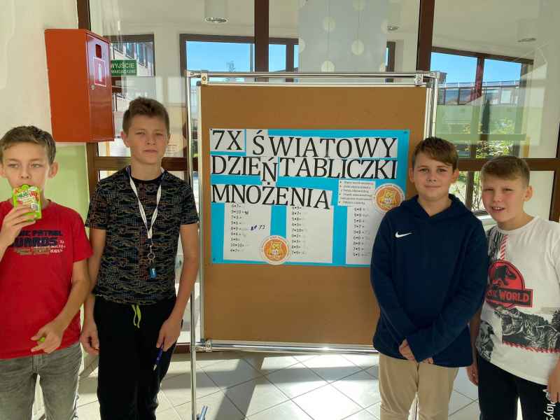 Dnia 7.10.2022r obchodziliśmy w naszej szkole Światowy Dzień Tabliczki Mnożenia. Celem wydarzenia było utrwalanie znajomości tabliczki mnożenia wśród dzieci i dorosłych. Uczniowie tego dnia krążyli po szkole i przepytywali z działań matematycznych swoich nauczycieli.